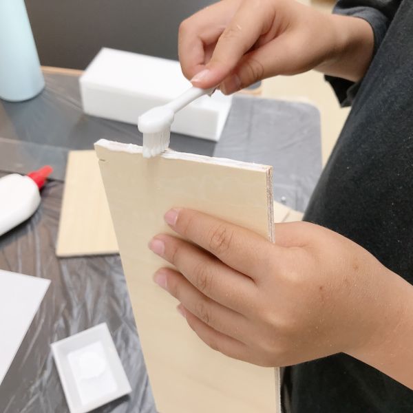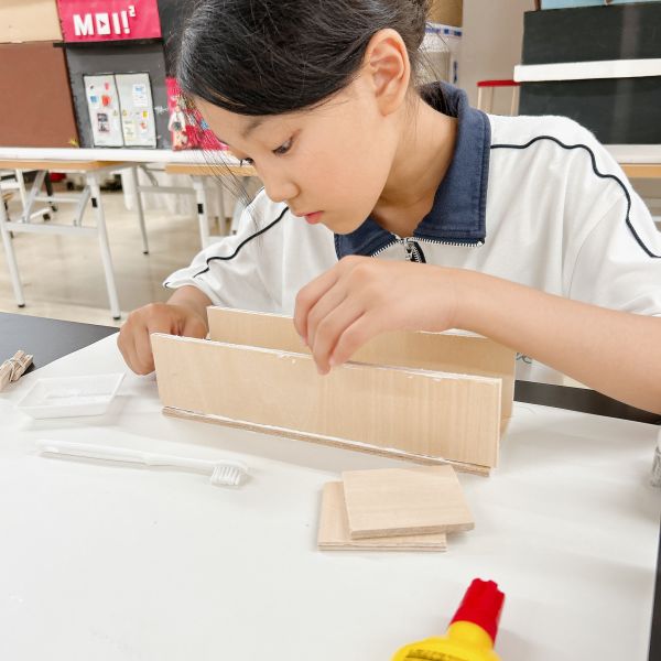 いくつかパーツができてきたら「ボンドで組み立ててみたい!」という子も。たしかに、ここで「あれ!?1センチ短かった…」なんて気づくこともあり得ます。組み立てながら作るのは、いい方法かもしれませんね。