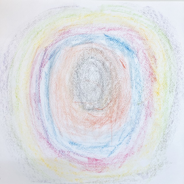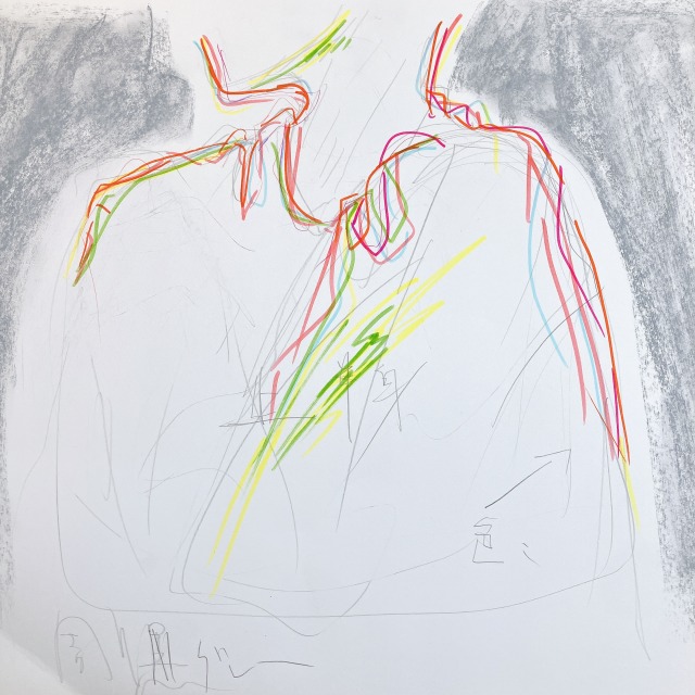 「これ、楽しいかも!」という声が聞こえました。クレヨンで塗った後に、修正が必要なことに気がついて、ナイフで削っていたところ...むしろその削りの感触やテクスチャーがとても気に入った様子。その後の制作にも、この発見をうまく生かしていました。