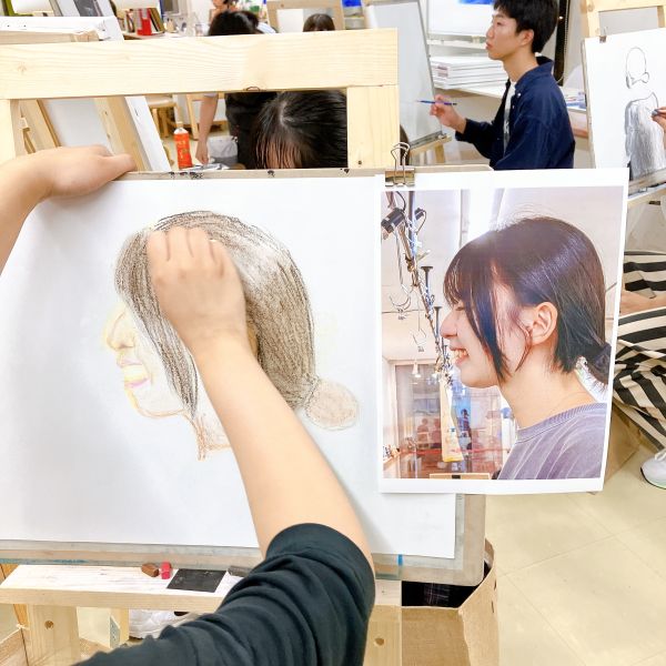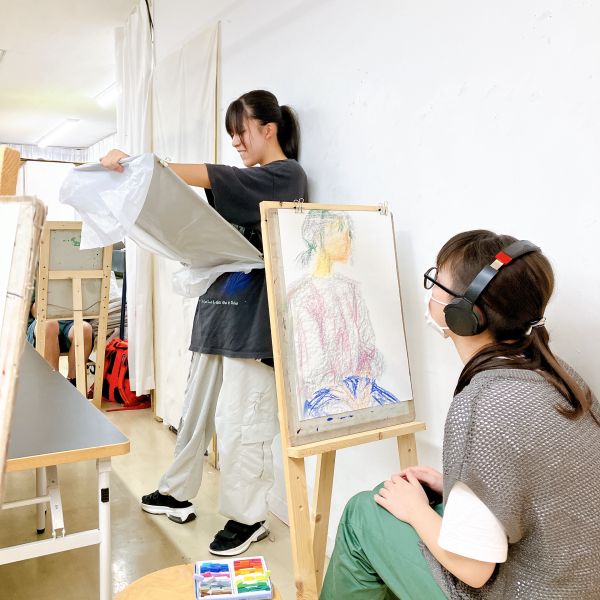 さきちゃんについてあれこれ知りながら、どんなポートレートにするか検討していきました。ラフスケッチを描いたり、迷った時は追加で質問をしたり、あれこれ画材を試したり。各自次回の制作に向けて、構想を練っていきました。