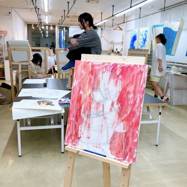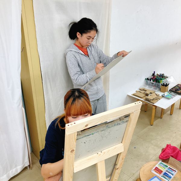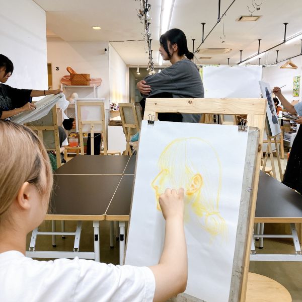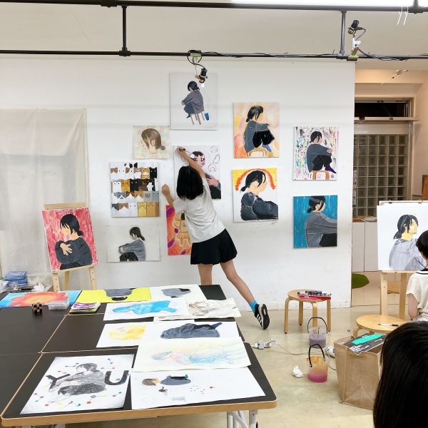 前回のラフ制作を踏まえ、今日から2回かけてポートレートの本制作。モデルのさきちゃん「らしさ」を表現していきます。自分で選んだ支持体を受け取り、画材を準備。今年からラボになった中学生たちも、絵画制作のセッティングにずいぶん慣れてきました。