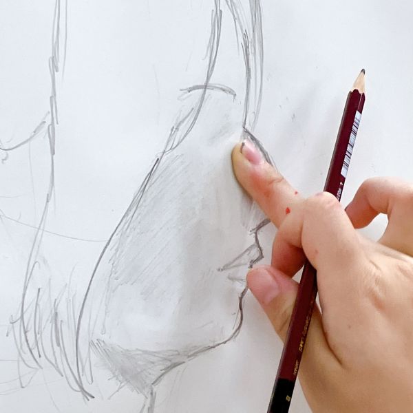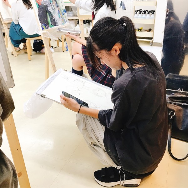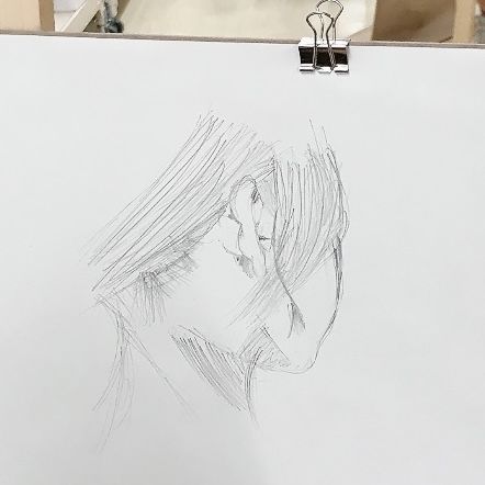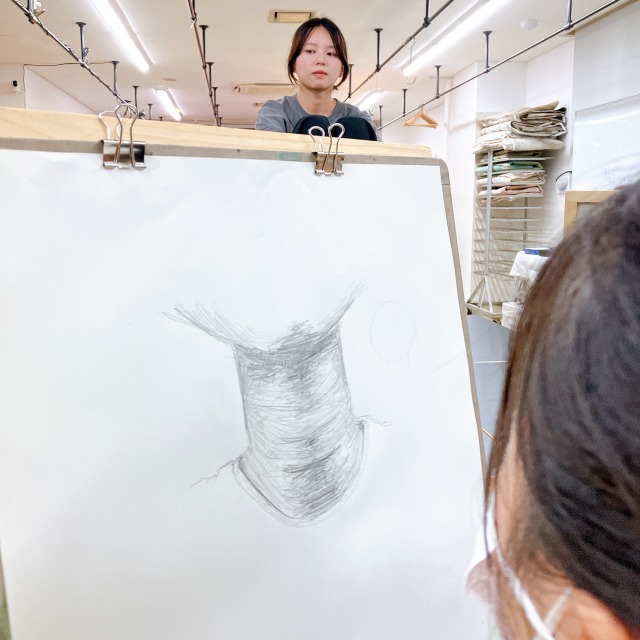 トルネードで一緒に制作していた時期もある高校生のみんなは、お久しぶりの再会となりました。さっそく、モデルのさきちゃん研究をスタート。それぞれが気になった部分に注目し、目、鼻、耳、腕、首など、その人らしさはどこに表れるのか?を探りながらスケッチしていきました。