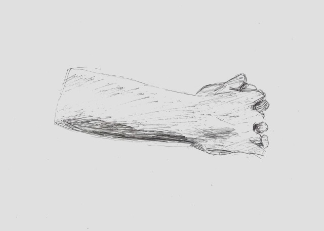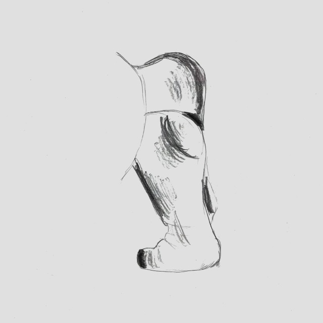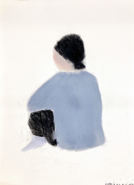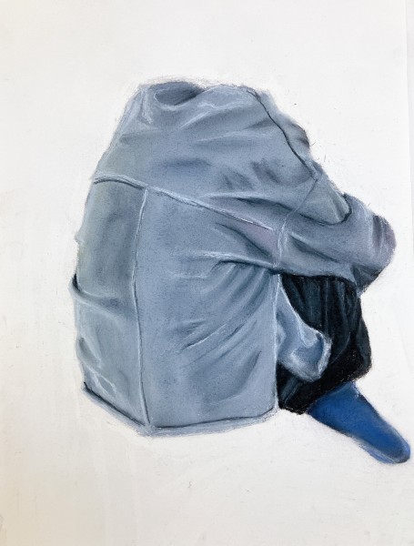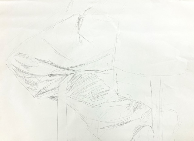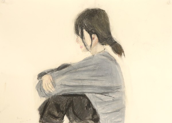 こちらは「ふだん見られている意識が強い"顔"よりも、あまり見られないところを描く方が、その人の素が出そう」ということで、足元に注目。おもしろい視点をもっていますね。モデルが着ているゆったりした服の皺なども、しっかり描き込んでいます。