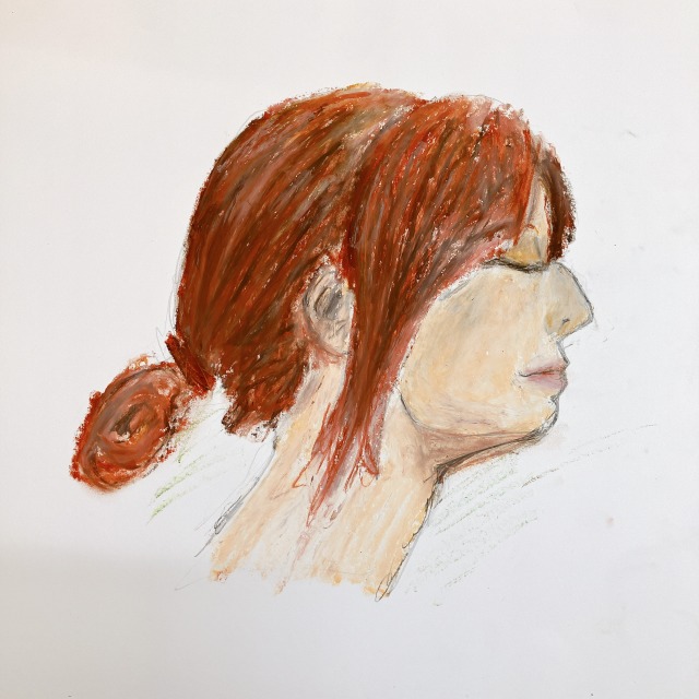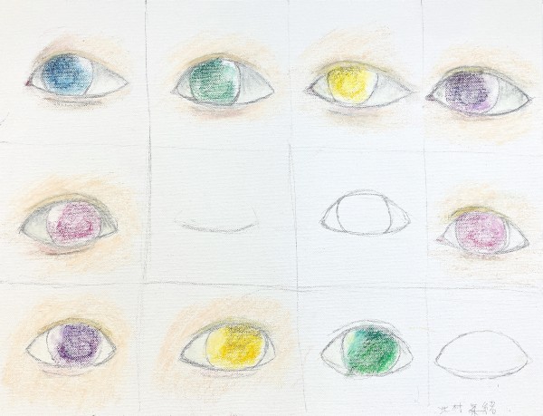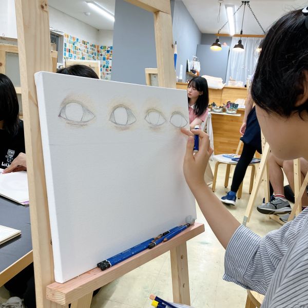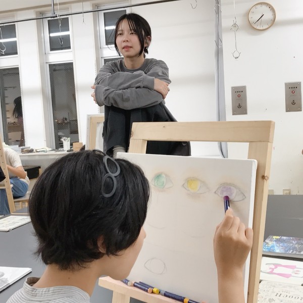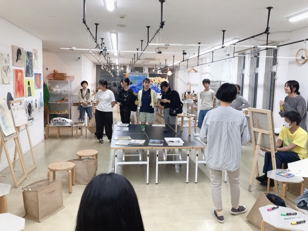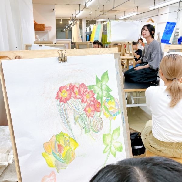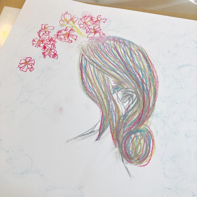 さきちゃんについてあれこれ知りながら、どんなポートレートにするか検討していきました。ラフスケッチを描いたり、迷った時は追加で質問をしたり、あれこれ画材を試したり。各自次回の制作に向けて、構想を練っていきました。