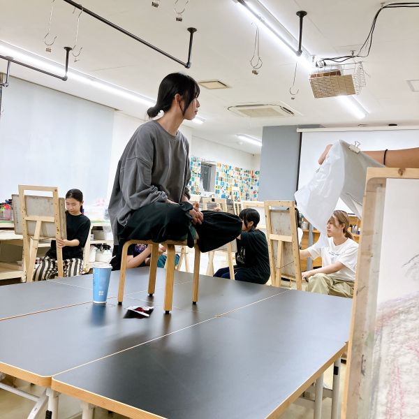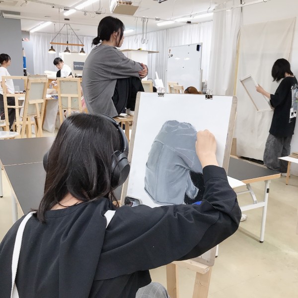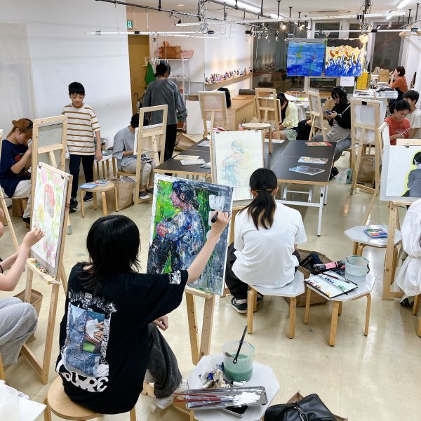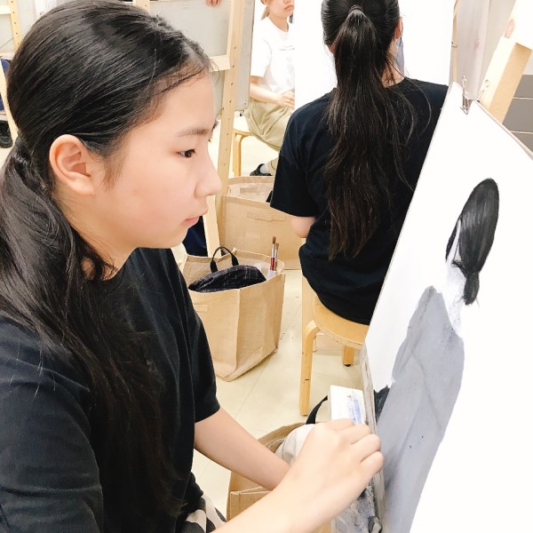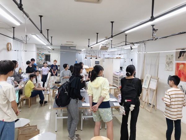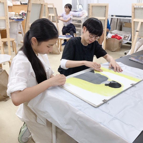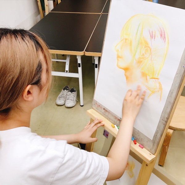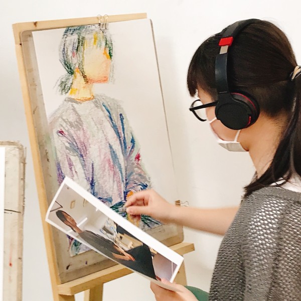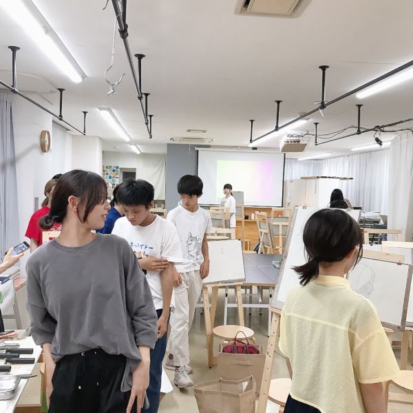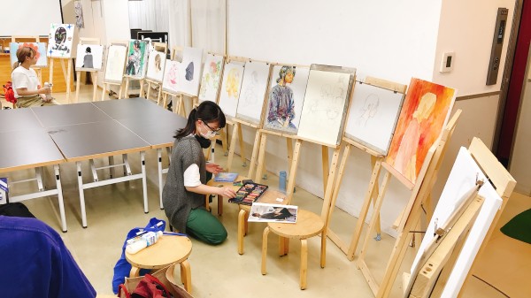 前回のラフ制作を踏まえ、今日から2回かけてポートレートの本制作。モデルのさきちゃん「らしさ」を表現していきます。自分で選んだ支持体を受け取り、画材を準備。今年からラボになった中学生たちも、絵画制作のセッティングにずいぶん慣れてきました。