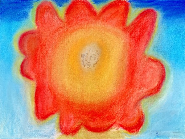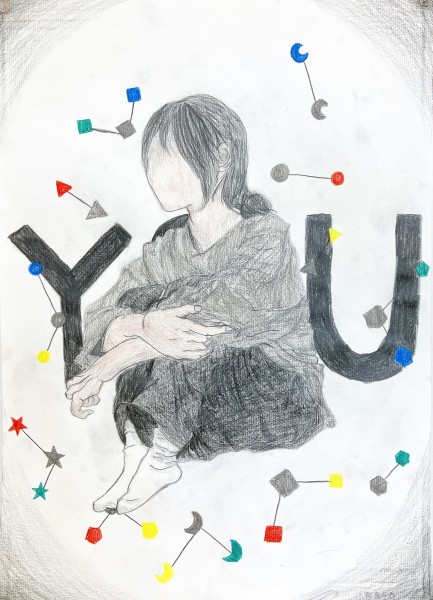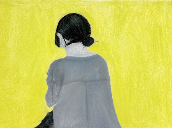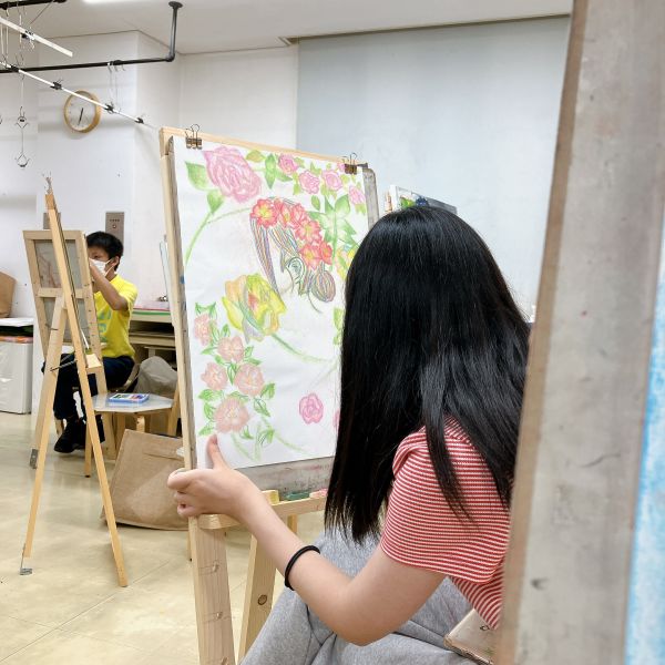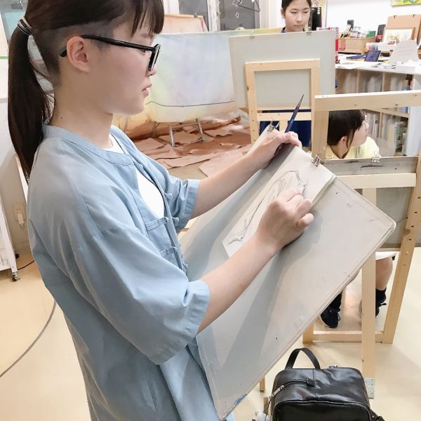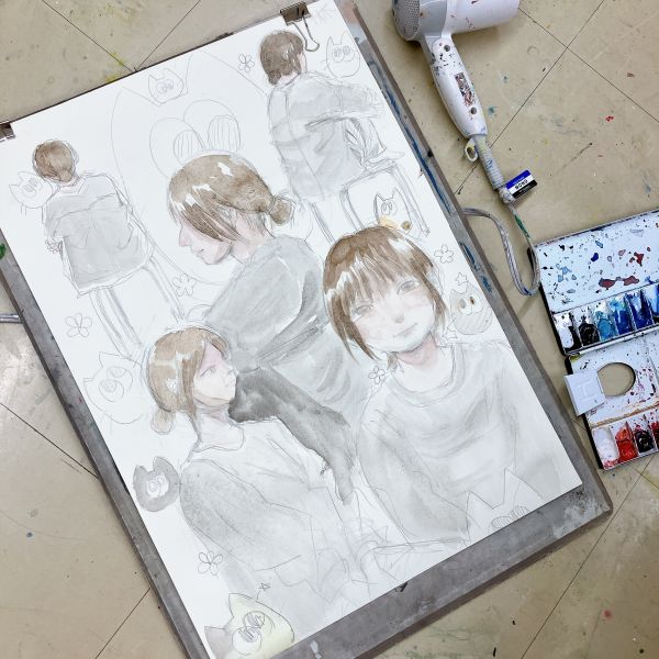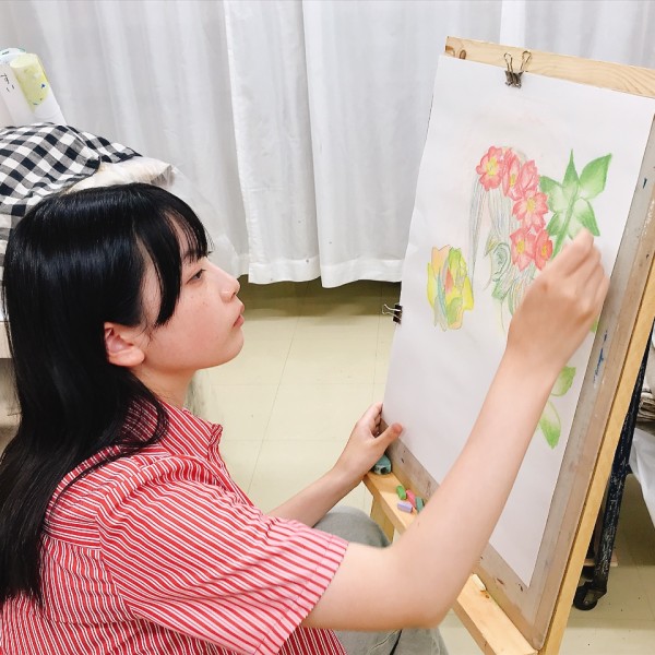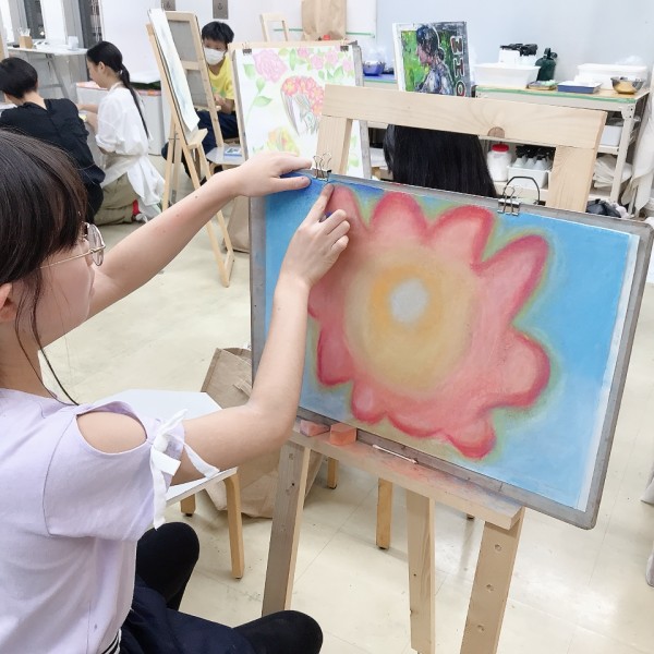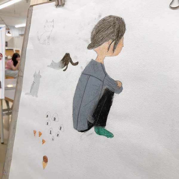 こちらは「暖かさ、やさしさ」を表現するために、パステルを選んでいました。粉の画材は、ぼかしの表現などにも適しています。まだはっきりとした形になっていないイメージを、少しずつ、じわりじわりと描き進めていきたい様子。