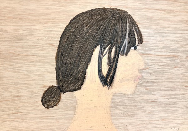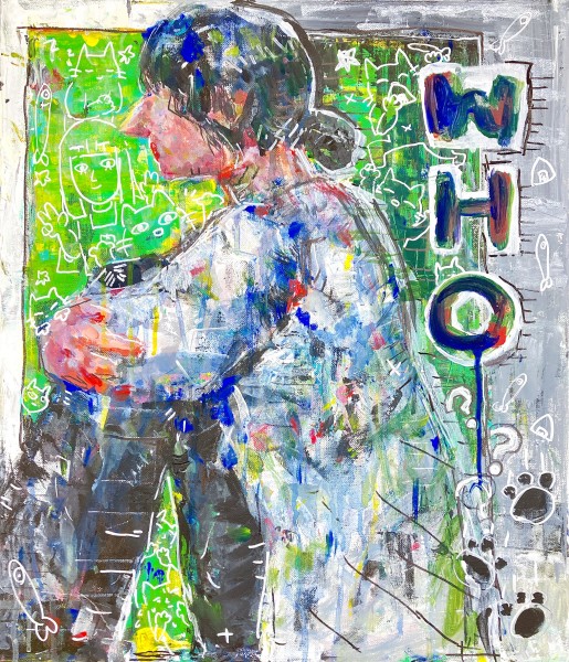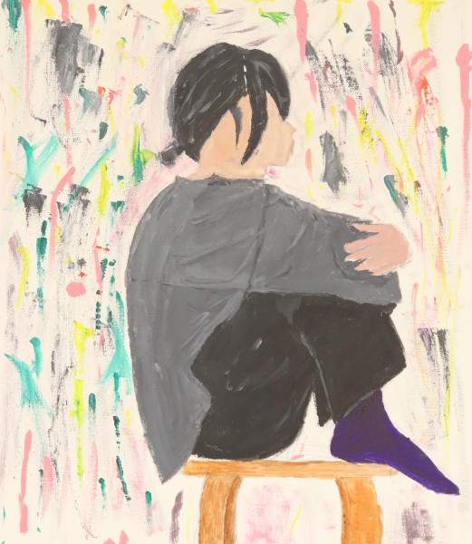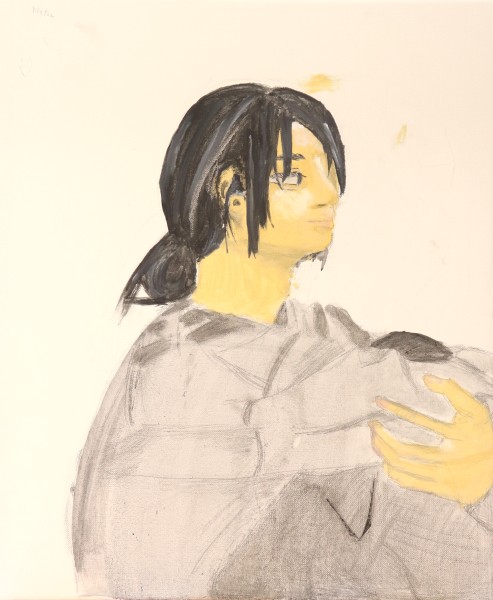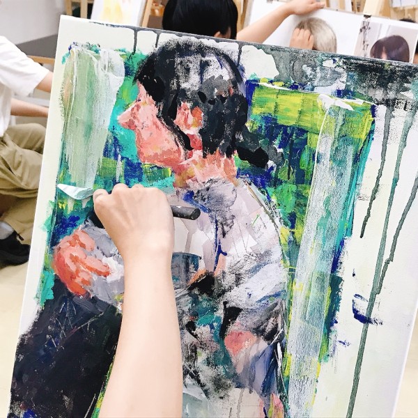 「いろんな話は聞いたけど、やっぱりまだモデルの全部を知ってるわけじゃないから、その謎さを描きたい」というこちらの方。うんうん、そうだよね。そうかんたんにその人の全てを知ることなんてできません。アクリル絵の具をいろいろな方法で重ねています。