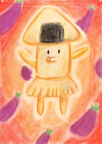 さきちゃんのおやつをヒントに生まれたというキャラクターが登場。「かわいい!」さきちゃんが休憩中におやつを食べているのを、しっかり見ていたようです。イカ?おむすび?タコ?いったい何を食べていたんだ?!