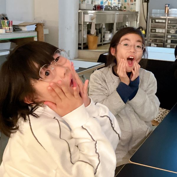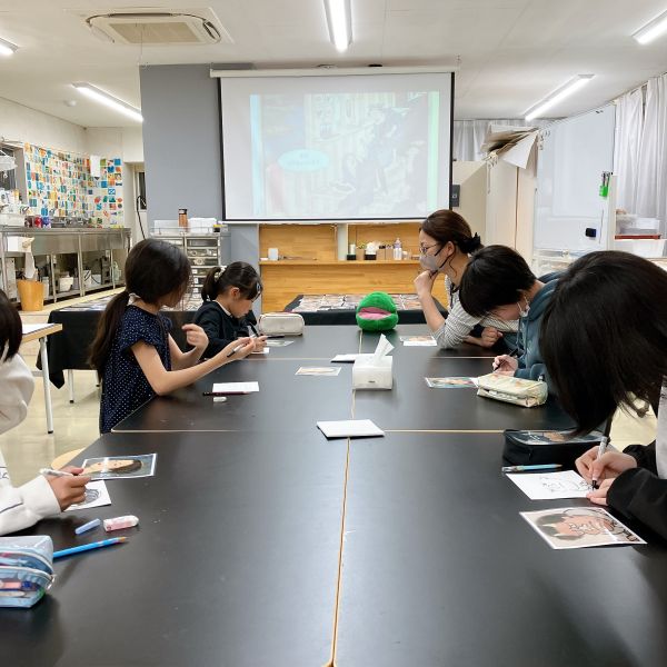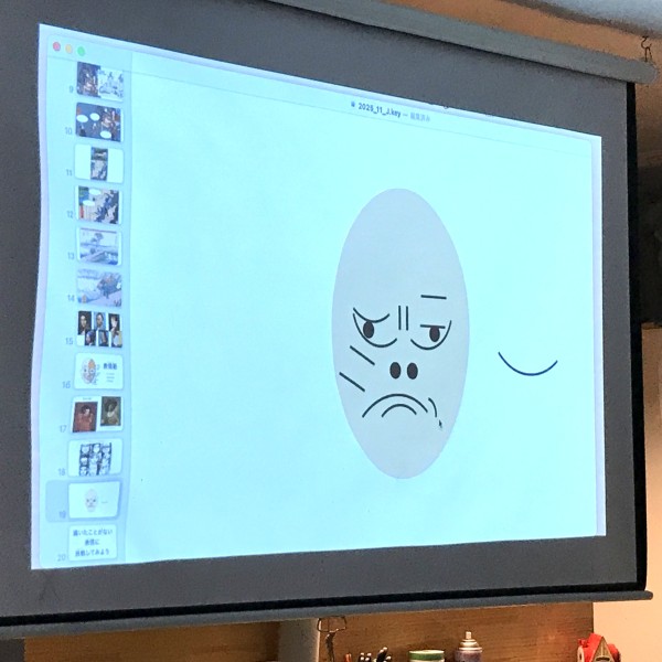 ...と思ったら、しばらくすると静まりかえった教室の中で「ぷっ!」「くすくす…」と小さな笑い声が。どうやらちょっとした線のずれや揺れで、描いていた表情ががらりと変わる。見ていると、どうしても笑ってしまう。教室のあちこちから笑いが漏れて、止まらない。