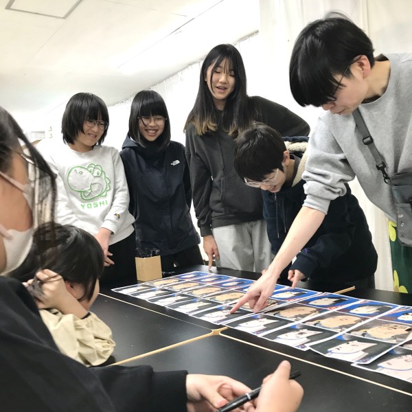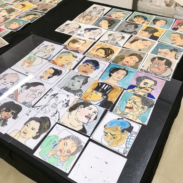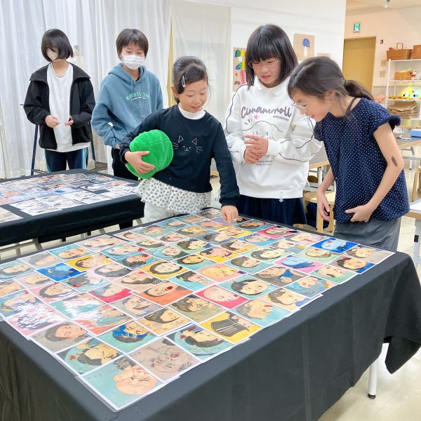 ちょっとシュールな作品コレクションの完成です。保護者のみなさんも「わ!これはおもしろい」「いいね〜」と楽しんでくれました。こどもたちの身近なマンガやアニメを想起させるようで「あのマンガに出てくる人は表情がたくさんある」「うまいんだな」など意外な発見もありました。