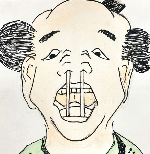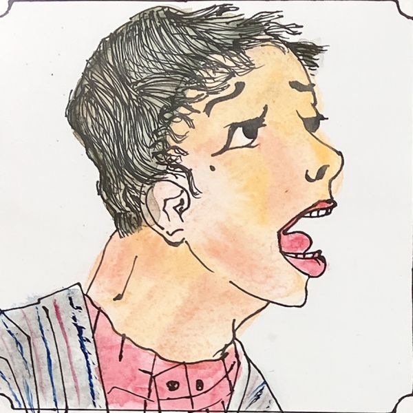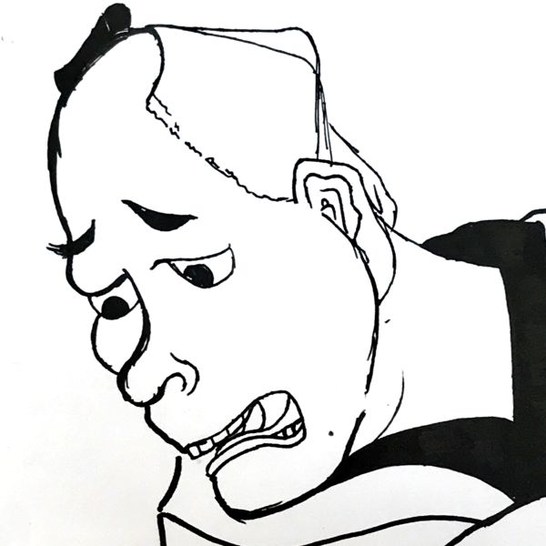 眉毛のあたりに少ししわを加えてみたら...「なんか嫌そう」不機嫌ぶりが強くなりました。さらに口の中の歯をはっきりとした線で強調すると「なんかさらにおもしろくなさそうな顔」に。まさに「チェッ」というセリフがぴったり。