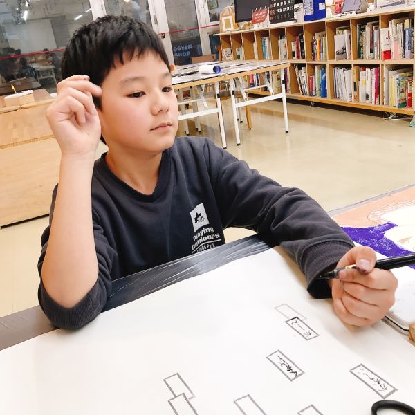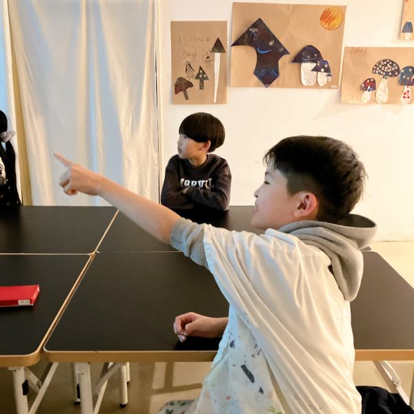 このドローイングは、こどもたちをいつの間にか夢中にさせる楽しさがあった様子です。シンプルだけれど、全然飽きない。多くの子たちが没頭して、深い集中タイム!