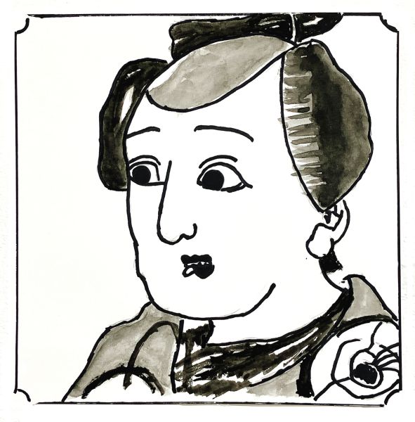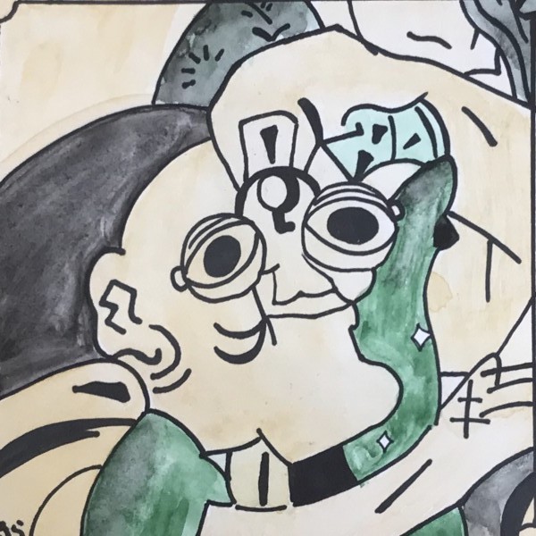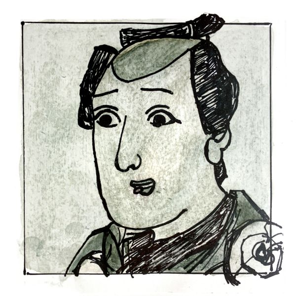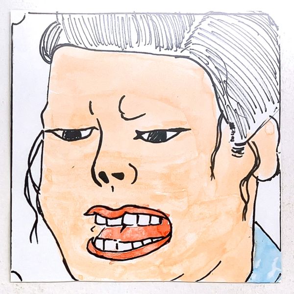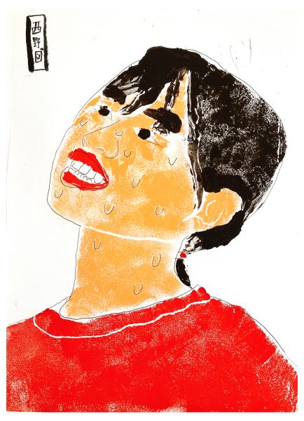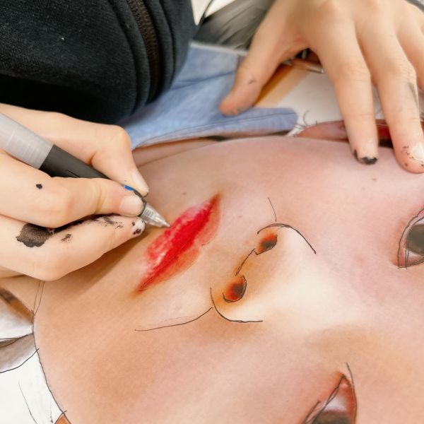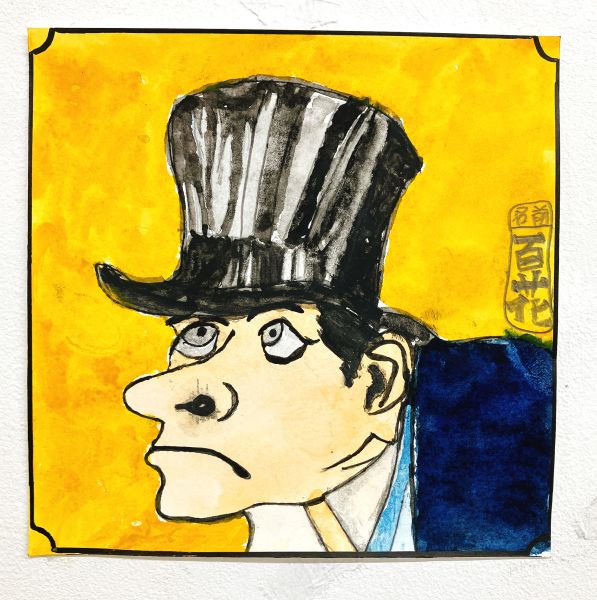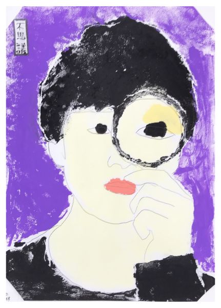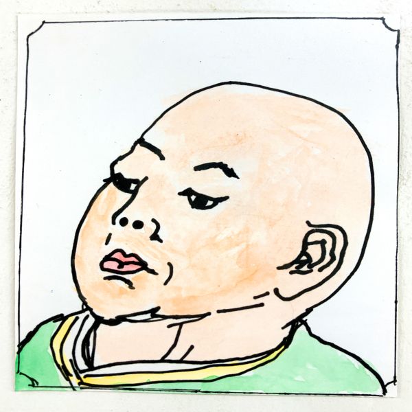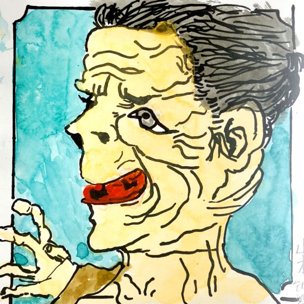 くっきりとした線が入ることで、ぼんやりとしていた表情が一気にクリアになり、力強さが生まれました。細いラインを用いた描写には、どこかアンディ・ウォーホルの作品のような雰囲気もあります。