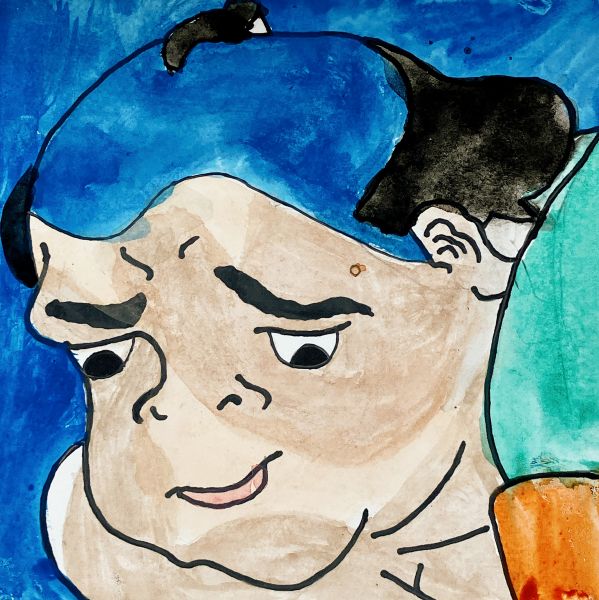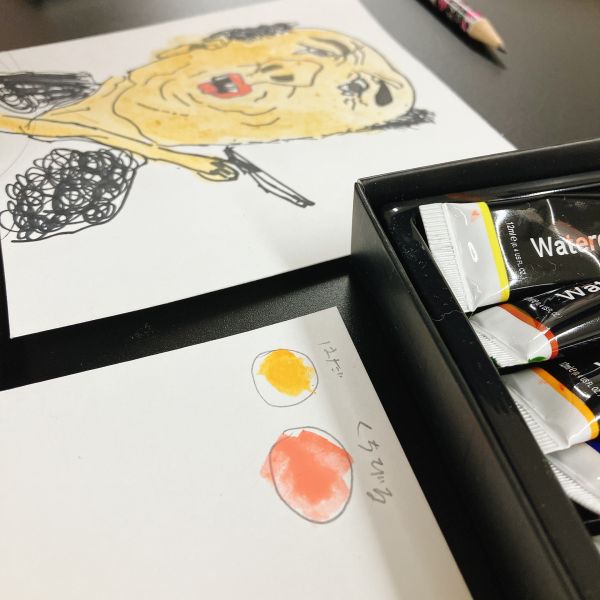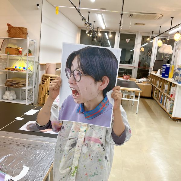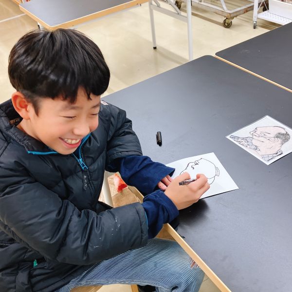2枚目は、より表情がユニークで、描くシワも多い作品に挑戦した子も。「とても上手く描けた」と満足の出来。うんうん、良い感じ!だけどね、顔がオモシロすぎて、見てるとやっぱり笑ってしまう!