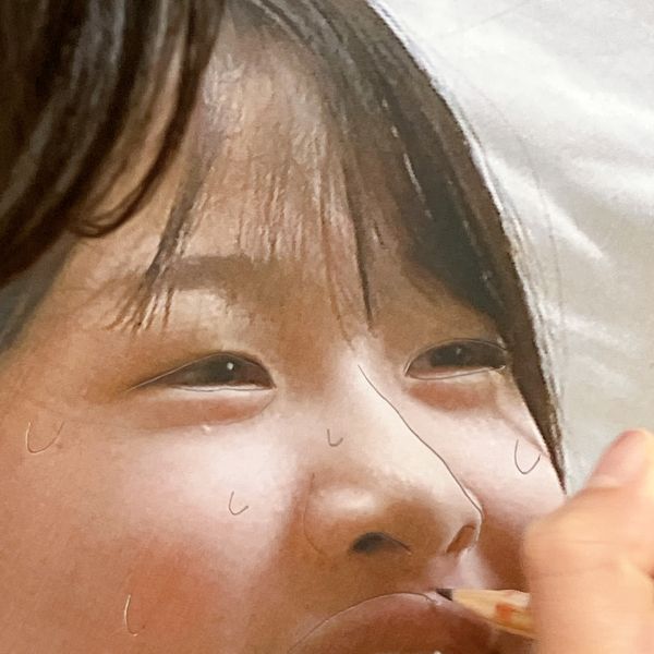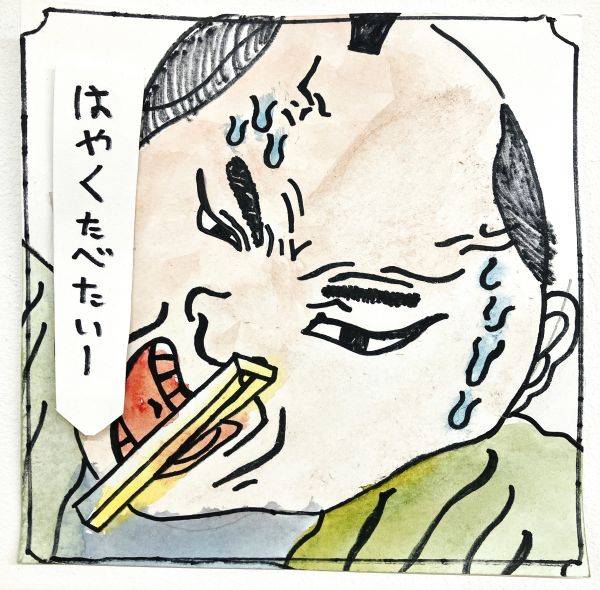 絵の中の人物にしっかり感情移入した子は「自分でセリフをつけてもいいかな?こう言ってると思うんだよね」と、オリジナルのふきだしを挿入。なるほど、このお方は腹ペコだったのですね!