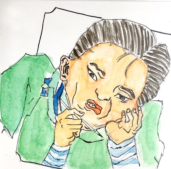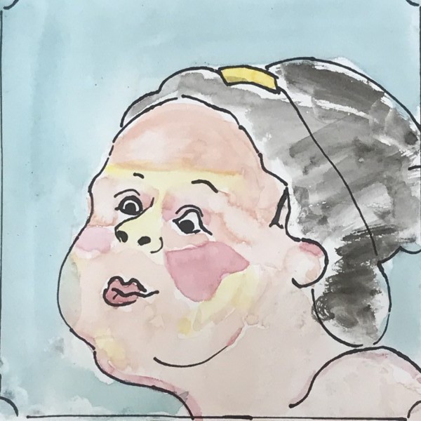 線がしっかり描けたら、軽く彩色をして仕上げました。透明水彩は、ドローイングの線も隠れず、さらっと塗りやすい。微妙な混色やにじみが出たのも、なんだか味わい深くて良いですね。