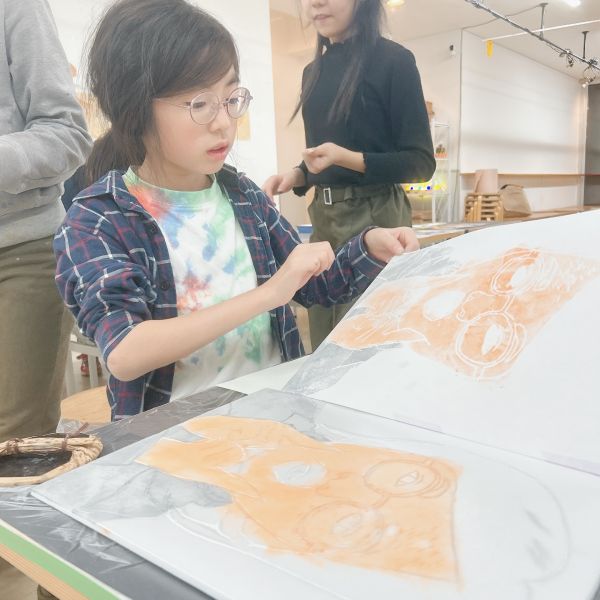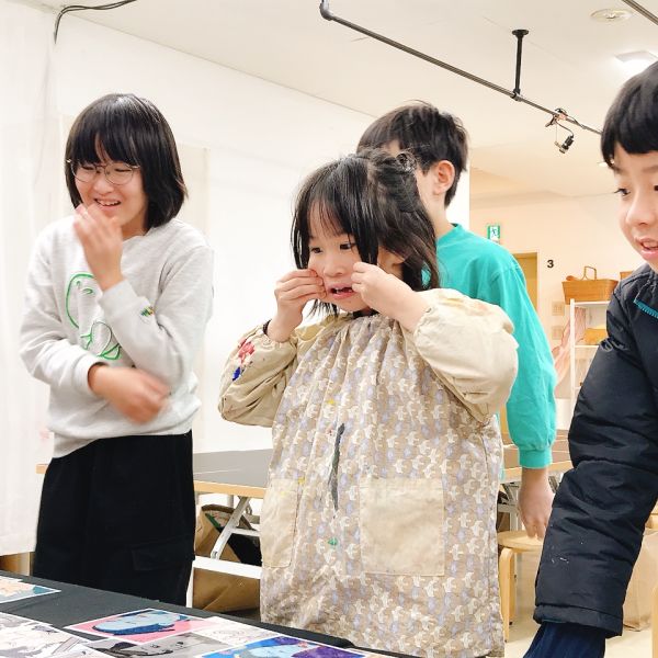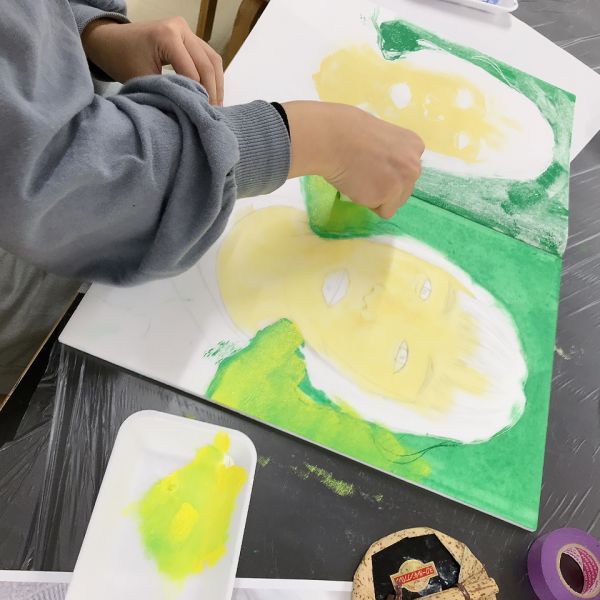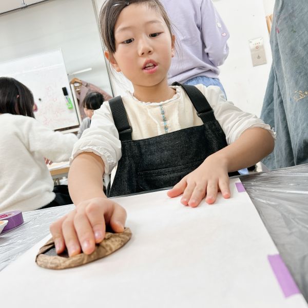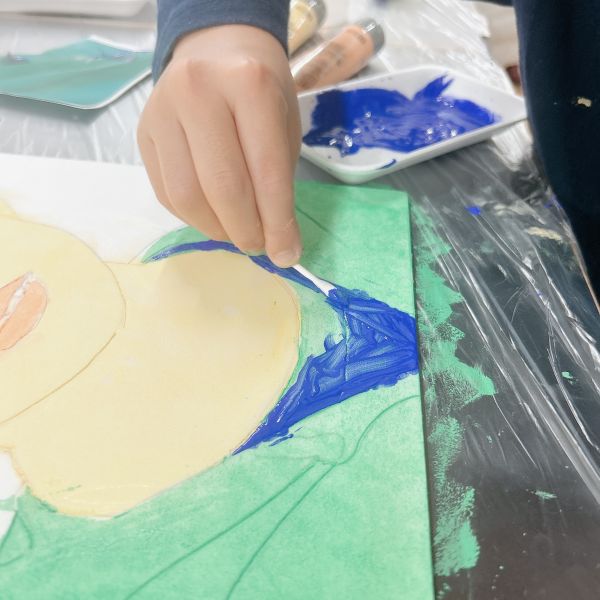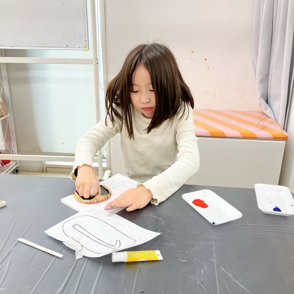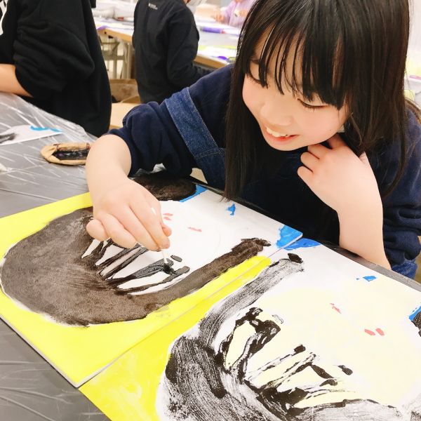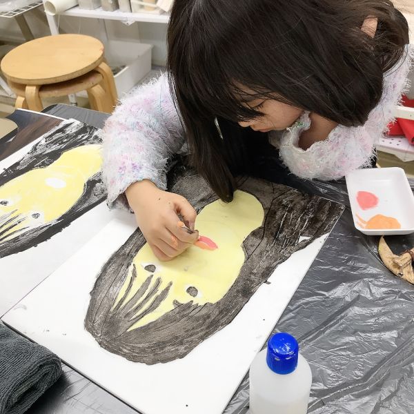 進行が早かった子は、肌の色の刷りまで体験してこの回は終了。ドローイングが色面になると「え、なんかすごいかも!」と自分の作品への期待感が高まった様子。次回の制作が楽しみですね!