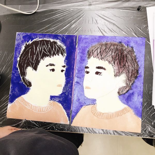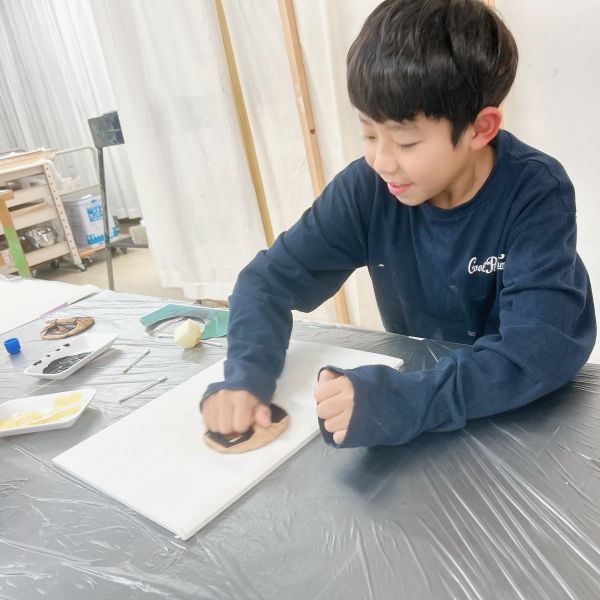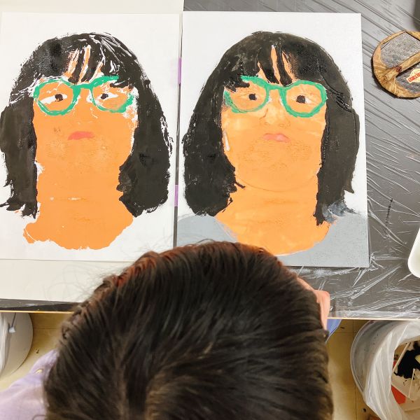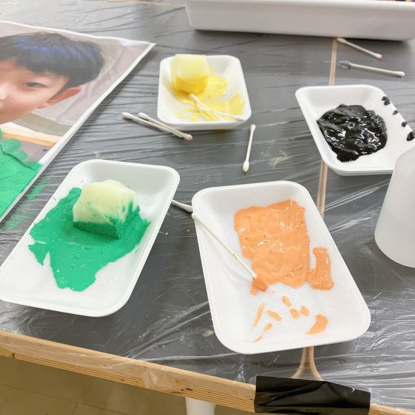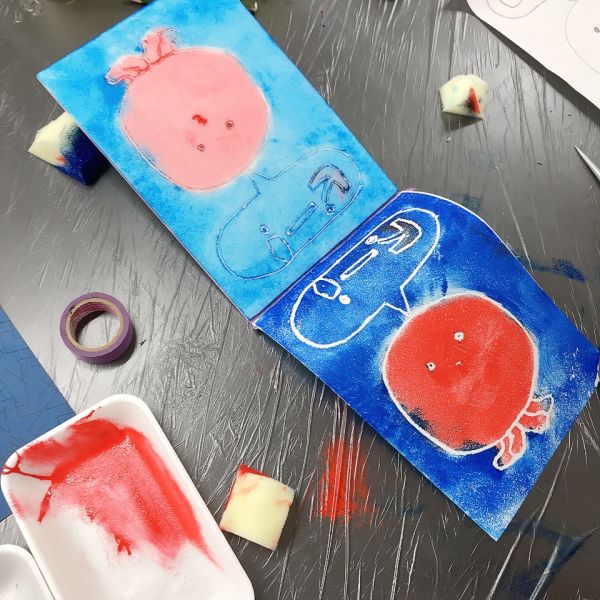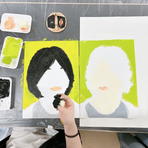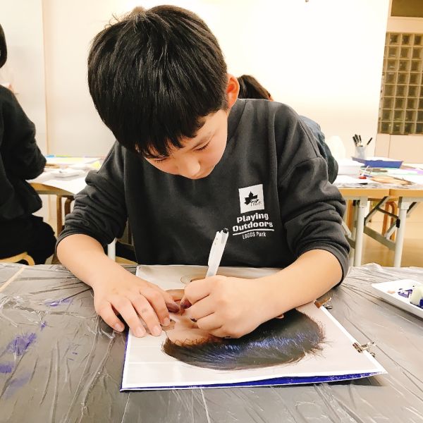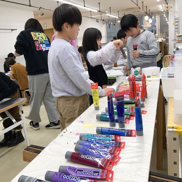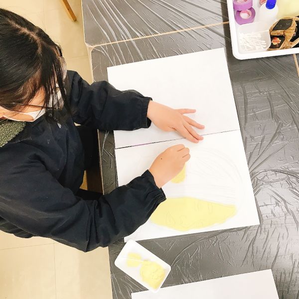 進行が早かった子は、肌の色の刷りまで体験してこの回は終了。ドローイングが色面になると「え、なんかすごいかも!」と自分の作品への期待感が高まった様子。次回の制作が楽しみですね!