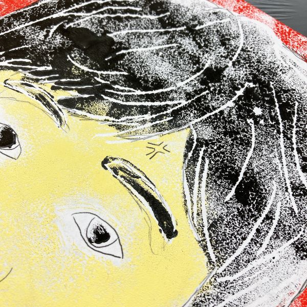 そこで今回は、スチロールボードに絵を彫って、多色刷りに挑戦してみることに。浮世絵と同じように「版」が必要になりますが、1版で複数の色を塗り分けることができるので、版画の入門として良い体験になるはずです。でも、ただの無表情じゃあつまらない。前回研究した「ヘン顔」をテーマに、制作してみよう!