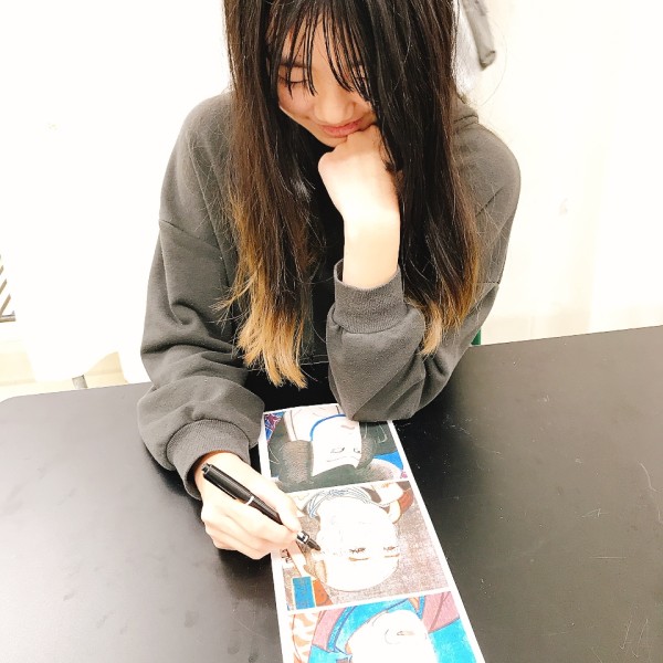 描いているうちに「男の人だけど、この人すごく爪がきれい」と発見し、「この爪はギャルでしょう」と現代風にアレンジしはじめた子が。素晴らしいオマージュ作品に!