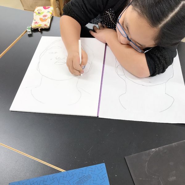 1枚描いてみると「いける!」「描けた!」そして、そこからさらに「ちがう顔も描きたい!」「次はもっとすごい顔に挑戦しよう」とさらに意欲を燃やす子も。描きはじめると、もう止まらない!