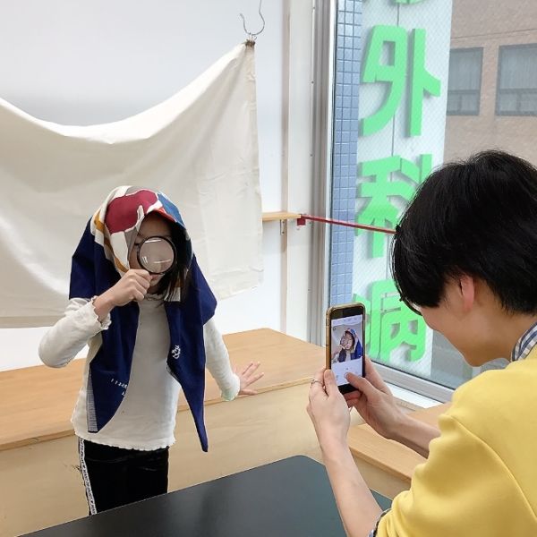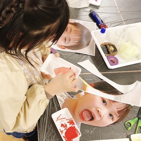 いろんなアイデアを出して、あれこれ迷うところですが、それぞれ納得のいく表情が決まったら、最終的に写真撮影。はずかしかったり、ちょっと緊張していた子もいましたが、全員何かしらの工夫をしてパチリ。みんな普段とはちょっと違う顔でしたが、やっぱりここでもその子らしさが出ていました。