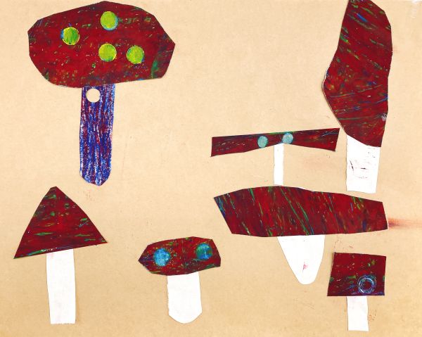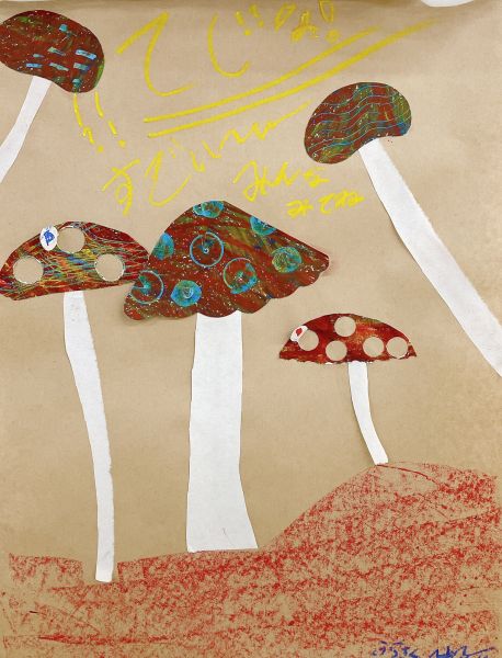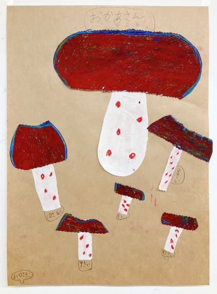 いろんな茶色で、大小いろんな大きさ・かたちのきのこが生まれました。「チャチャチャ!おどりだす」というお話のせいもあってか、不思議な躍動感を感じる作品がいっぱいです。