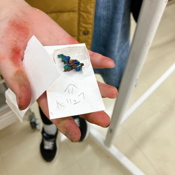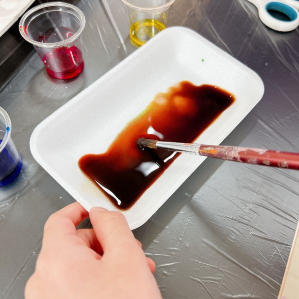 明るめの茶色ができたり、かなり暗めの茶色になったり。たったの3色を混ぜてできる茶色は、実にさまざまです。ほとんどの子が、自分で選んだ瓶の茶色にそっくりにしたくて、色味を調整していました。