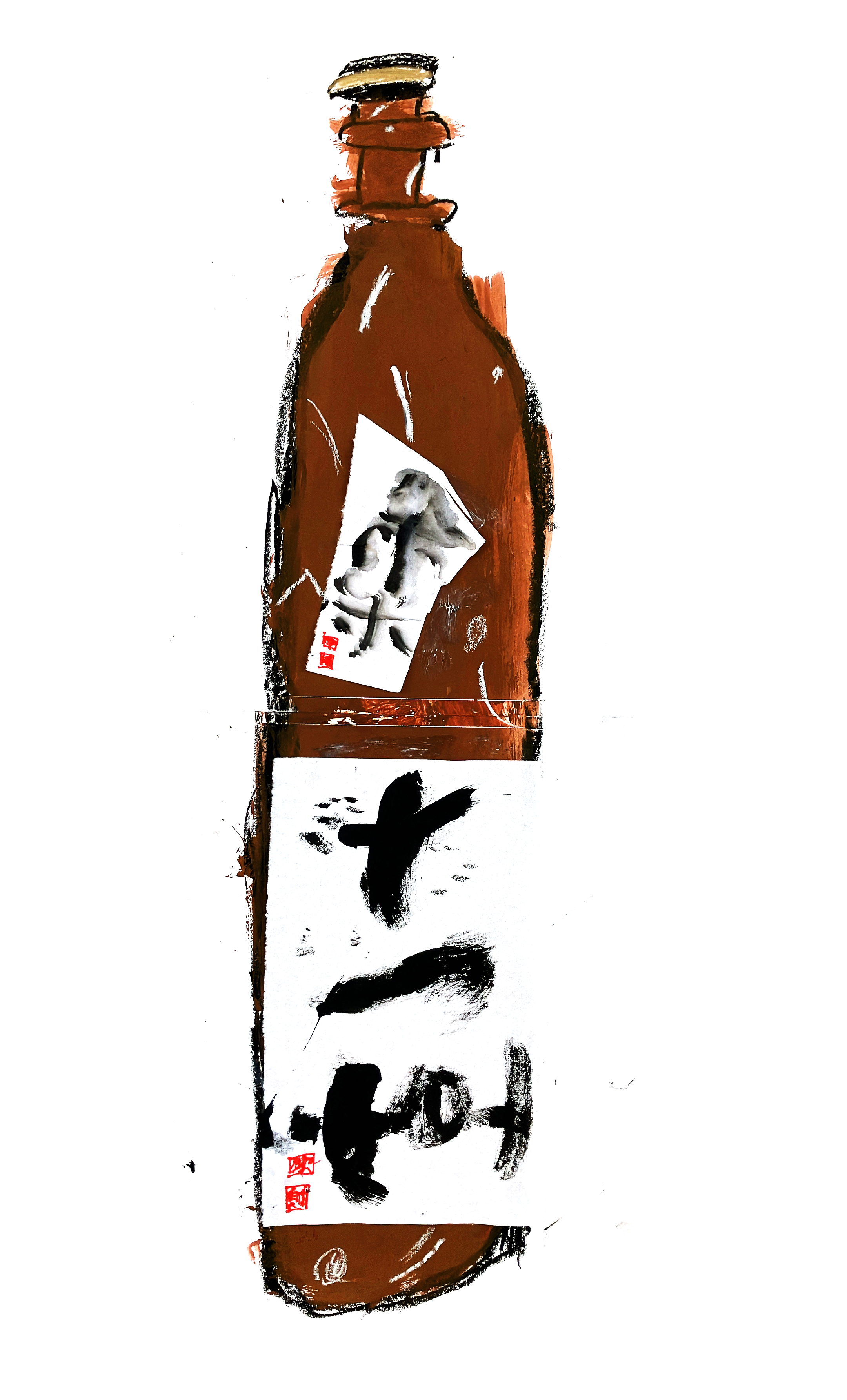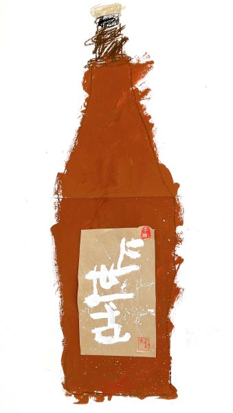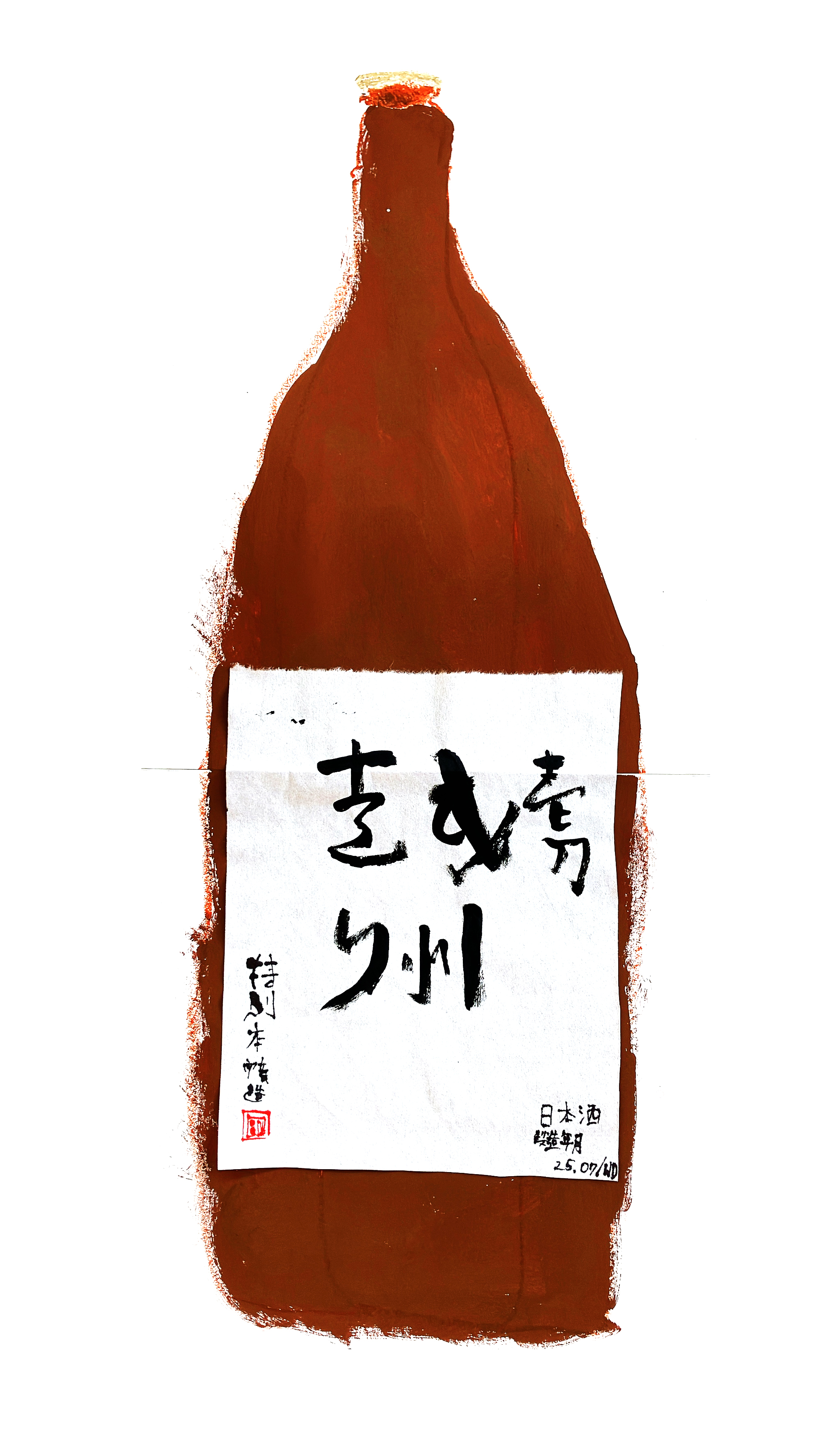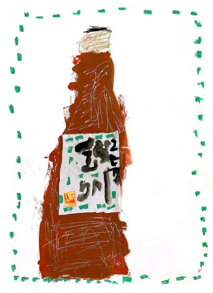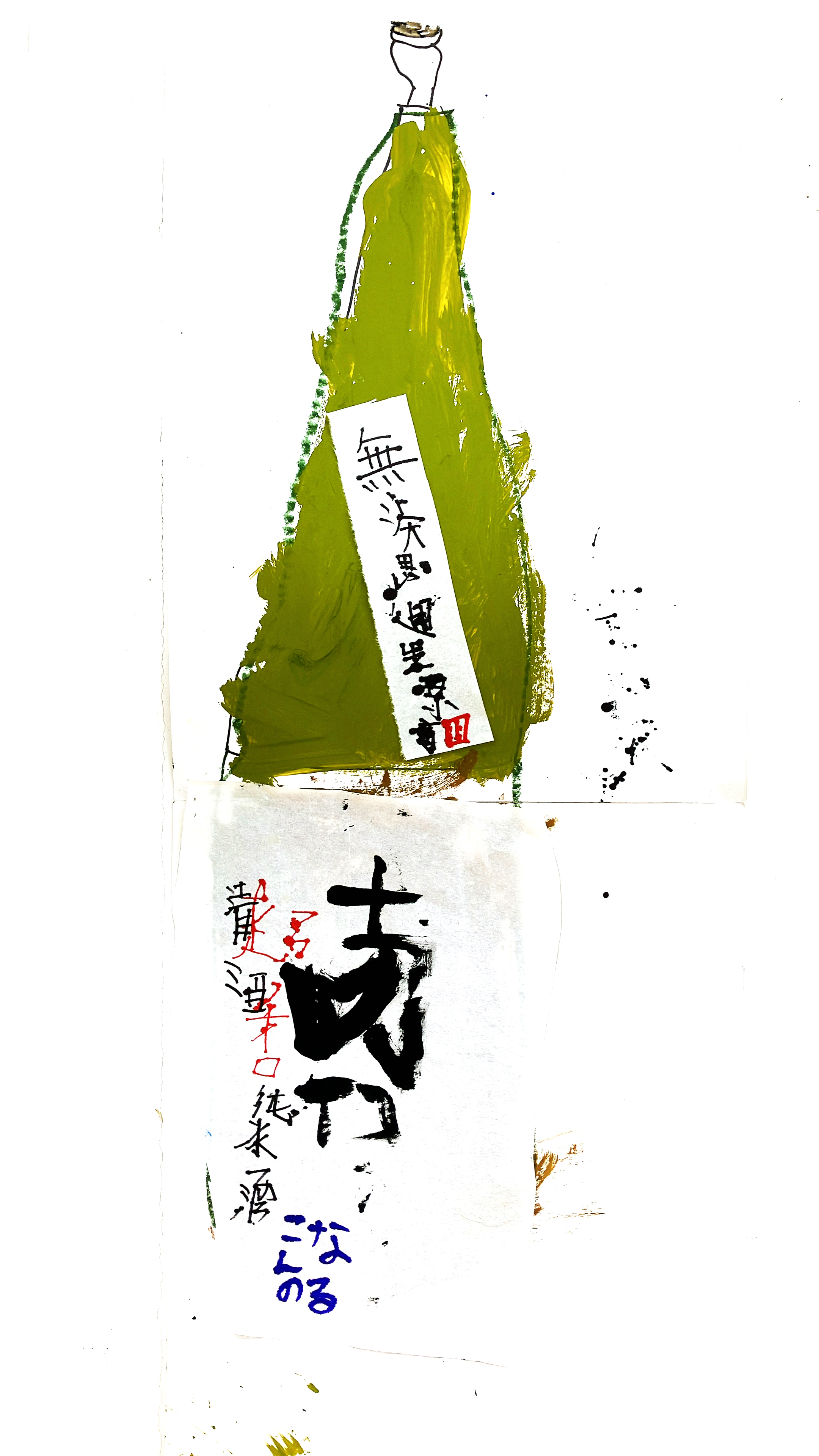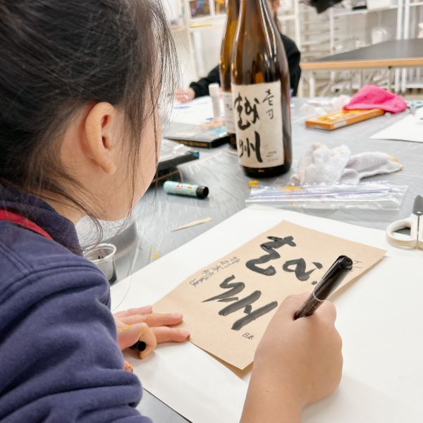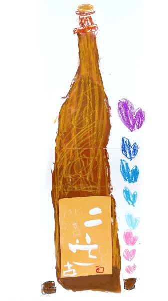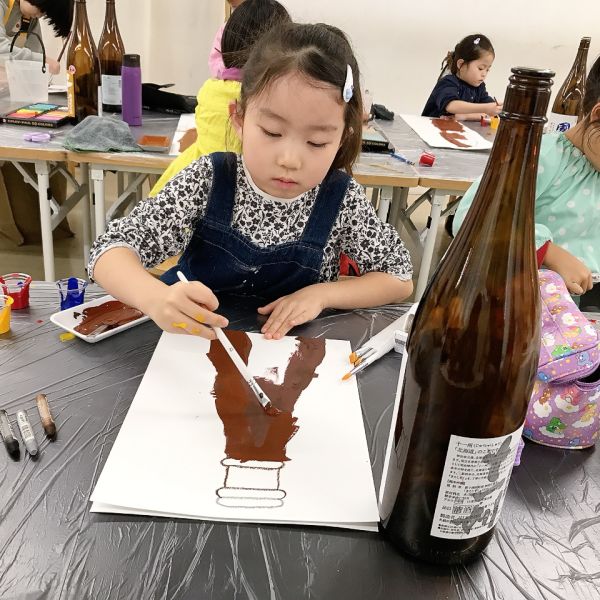 大きなちがいはボディに貼られたラベルたち。筆で力強く描かれた文字が、存在感抜群です。どの瓶も形は似ていますが、ほとんどのこどもたちはラベルを見ながらどの瓶を描くのかを選んでいました。