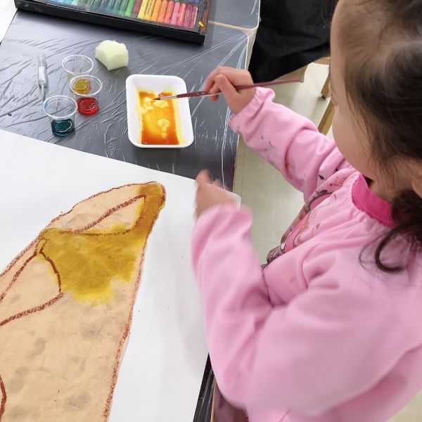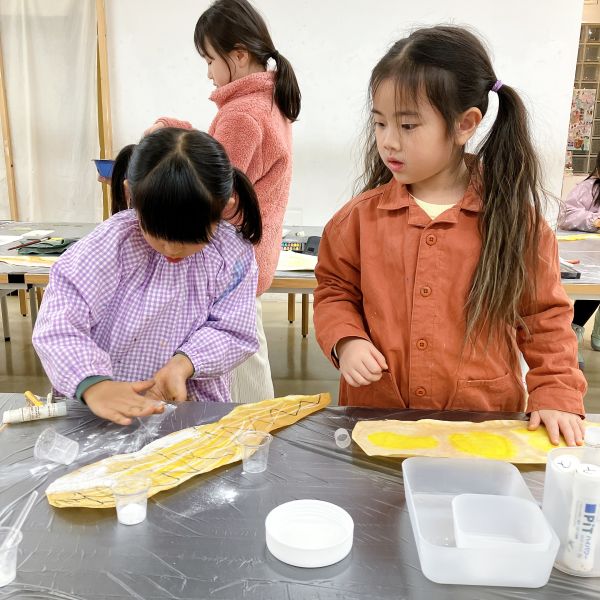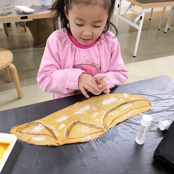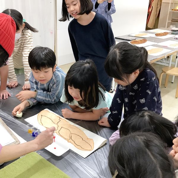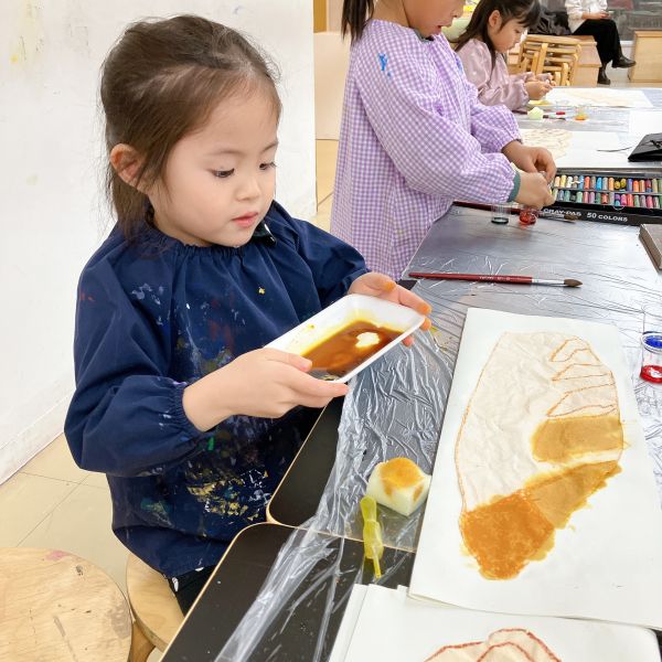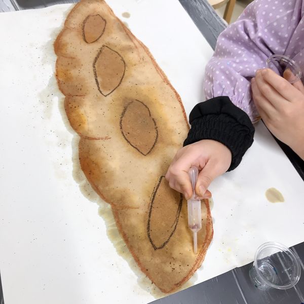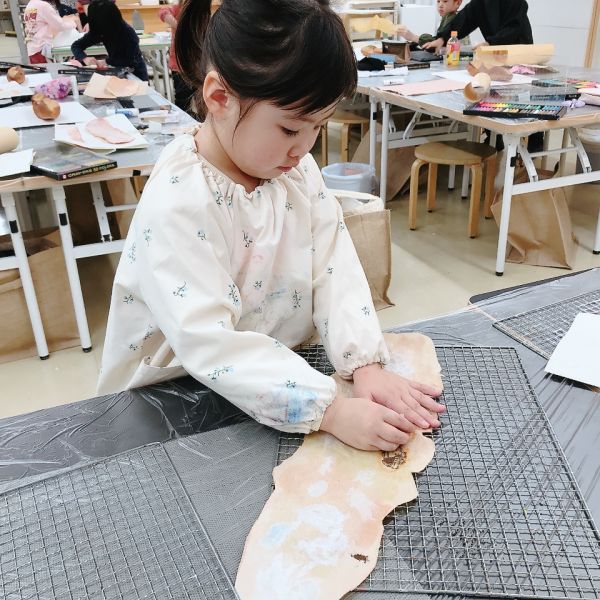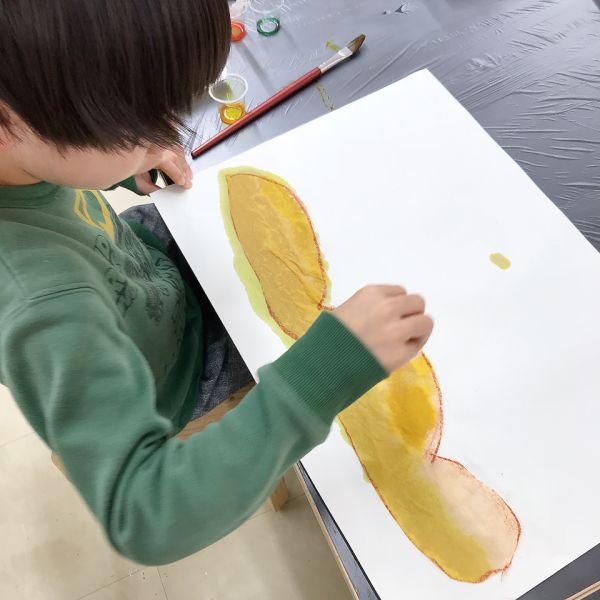 すごくリアルな色合いになってきましたが、こどもたちのこだわりは止まりません。モチーフと絵を見比べながら「もっともっといろんな茶色があるよ!」さらにやってみたいことがある様子。
