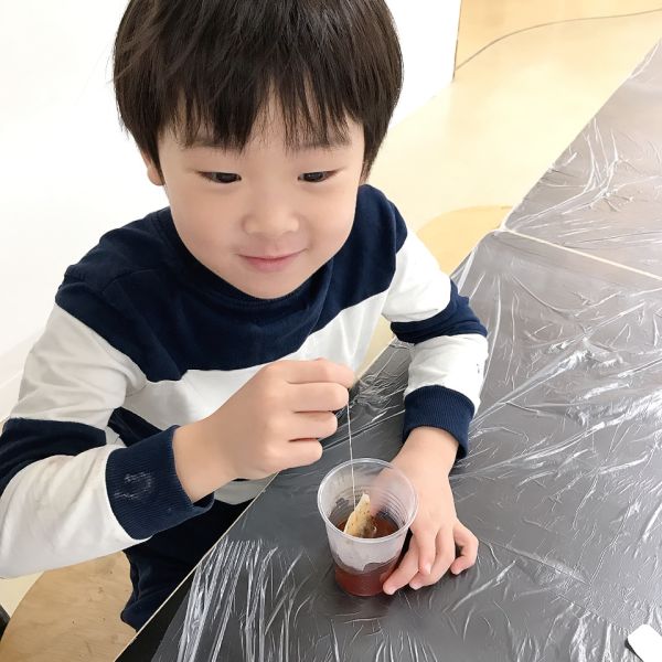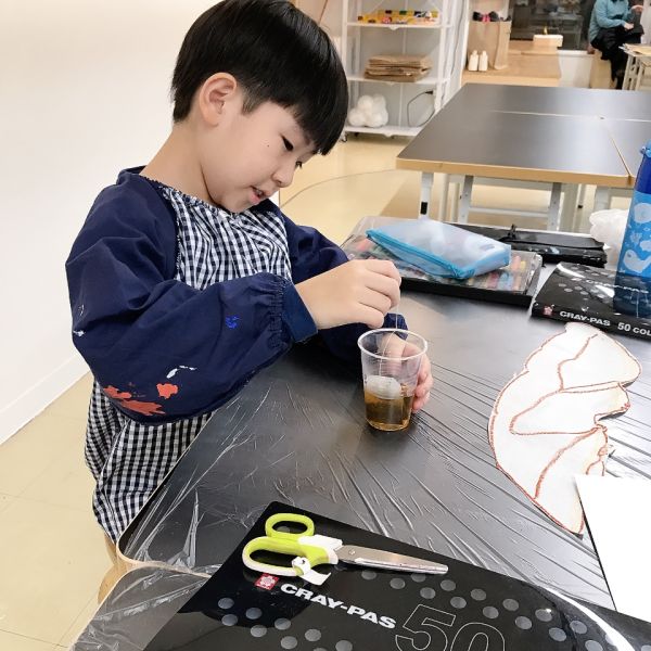 実験するような気分で「この色から入れようかな?」「きっとこうだ!」みんな色の変化をわくわくしながら楽しんでいました。どの色を、どのくらいの量に加減するのか、今までの経験も活かしながらチャレンジしています。