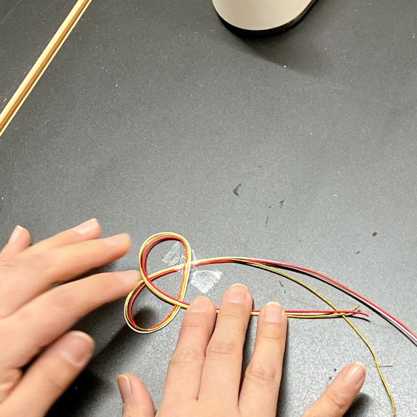 と思ったら、「もっときれいな形になるといいな」と、いちど作った縄を解いて、なんとひとりで再チャレンジしていた子が!ご覧の通り、形もきれいにできています。この短時間で習得するなんて、す、すごい...他の子の作品も「どれどれ」と助けてくれていました。
