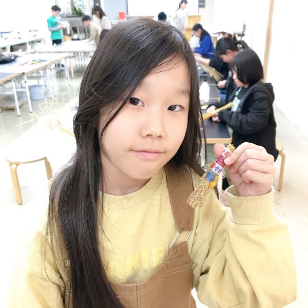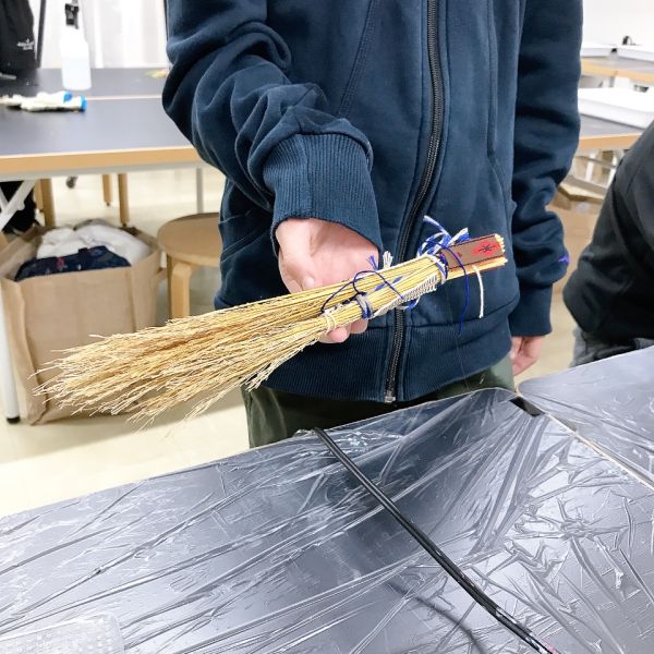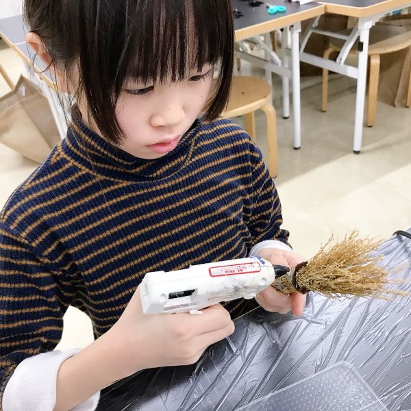 できたてのマイほうきで、いつもの制作後の教室そうじをはじめる子も。「そうじが楽しいじゃん。最高じゃん!」とルンルンでした。これがあれば、普段はあまりそうじしないところまで、ついつい手が伸びる!?愛着のある一品になりました。