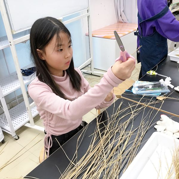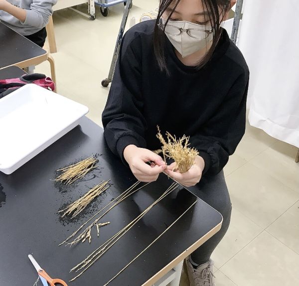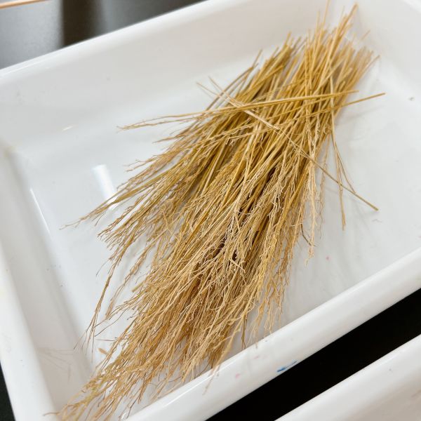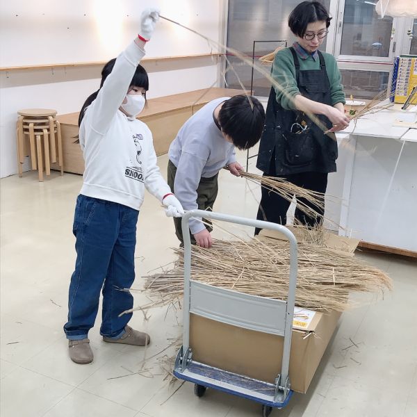 わらは、はさみでかんたんにカットできます。端の長さを切り揃えたり、穂先の形もちょっと工夫したり、ここもそれぞれのこだわりの見せどころ。それぞれがデザインした形や長さに仕上げていきました。