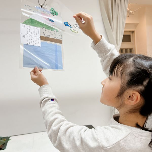 ここでは紹介しきれないほどたくさんの発想で、カレンダーが完成しました。おうちで使っているうちに、さらにいろんな見方やアイディアが出てきそう。一年を通して、どんどん作品を進化させてみてください。来年もいろんな制作をしよう!