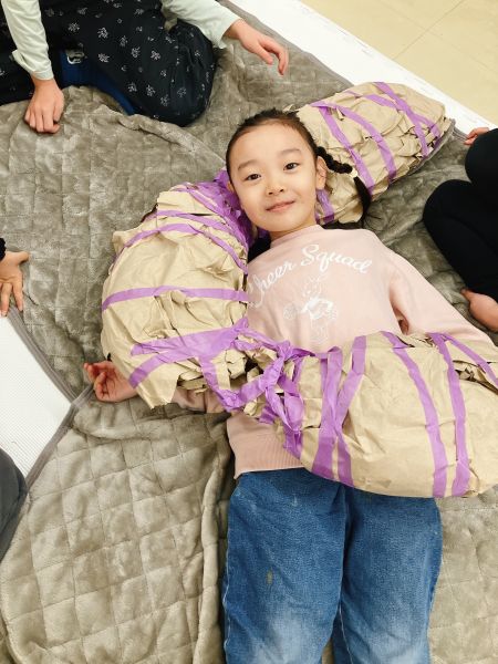 完成した子から、作品と一緒にごろりん!「こりゃあいい」「さいこう」自分の好みにぴったりなうえ、作品が完成した満足感も相まって、もうみんな顔がニコニコです。