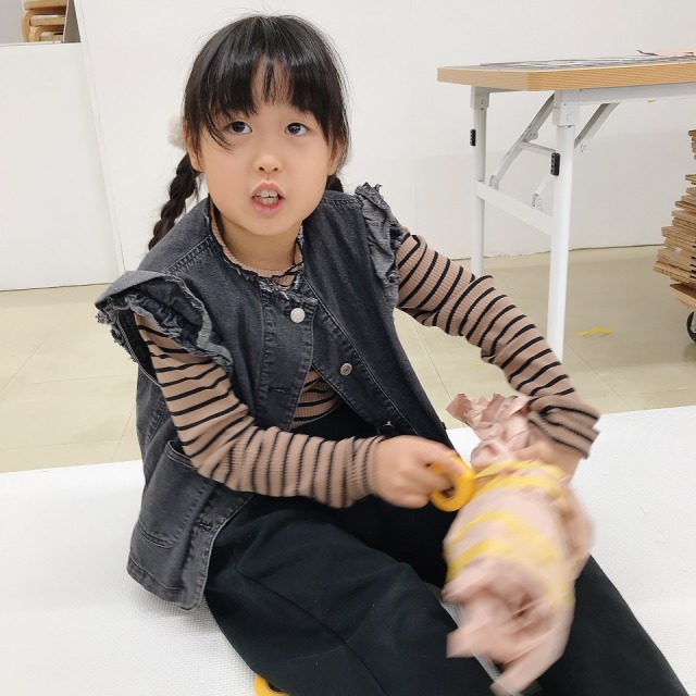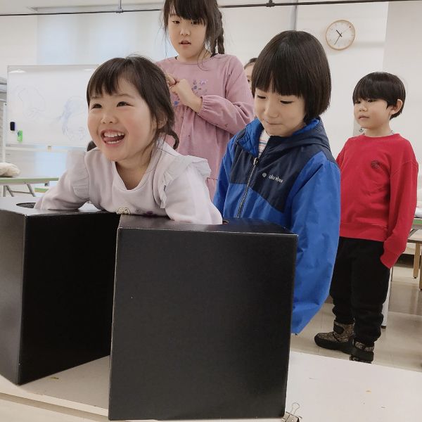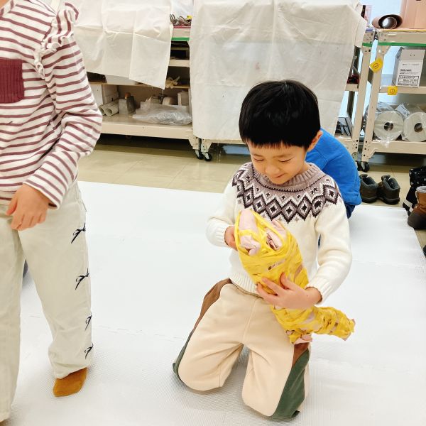 みんな教室に入るなり、前回作った自分の形を探し始めました。「ぼくの相棒は?」「いたいた!私の」自分だけの形が見つかると、すごく機嫌な様子。もうすっかり相棒として使い始めています。