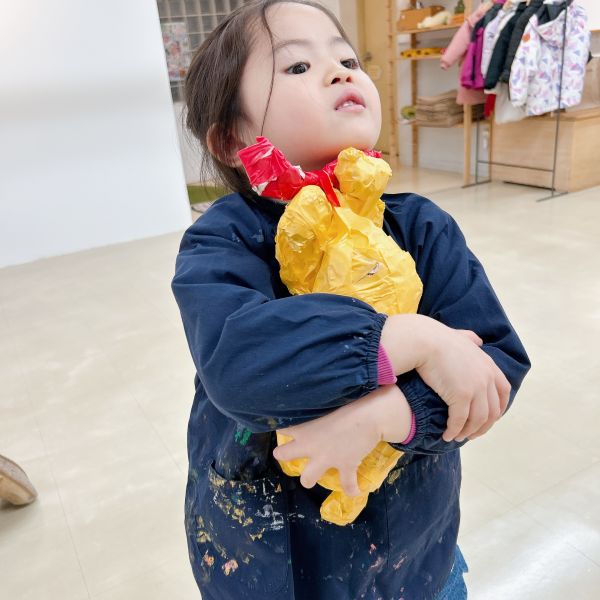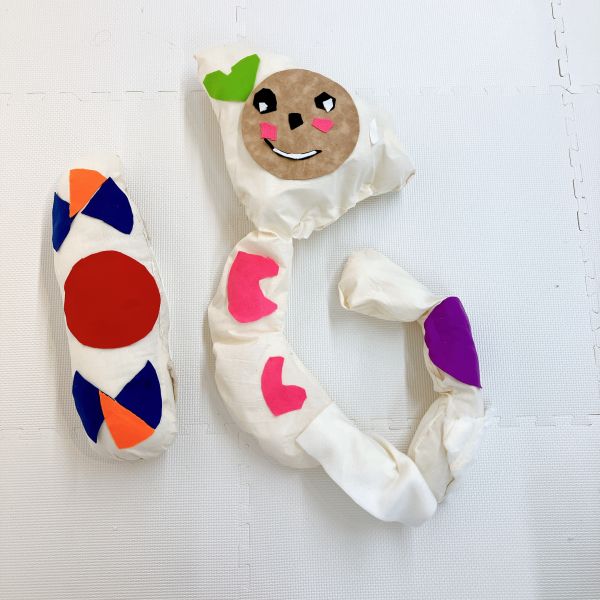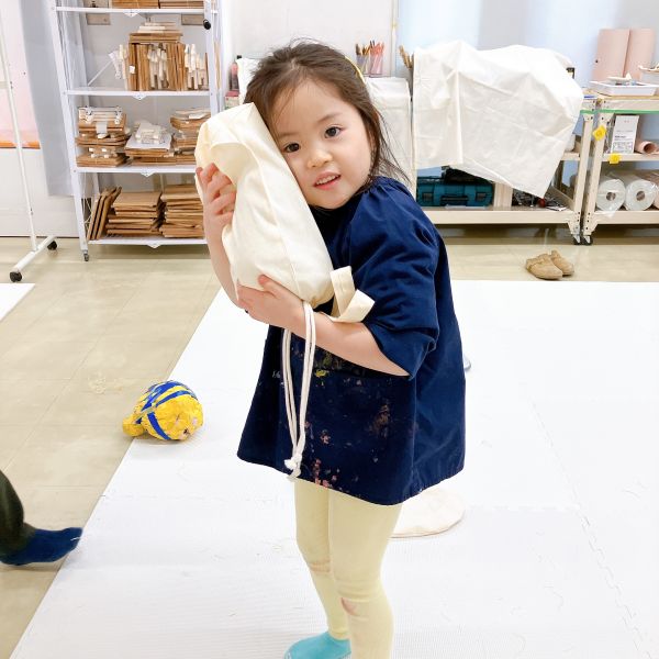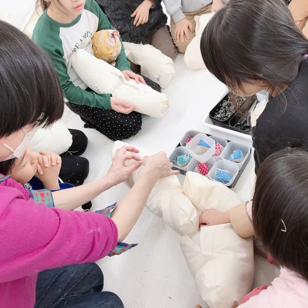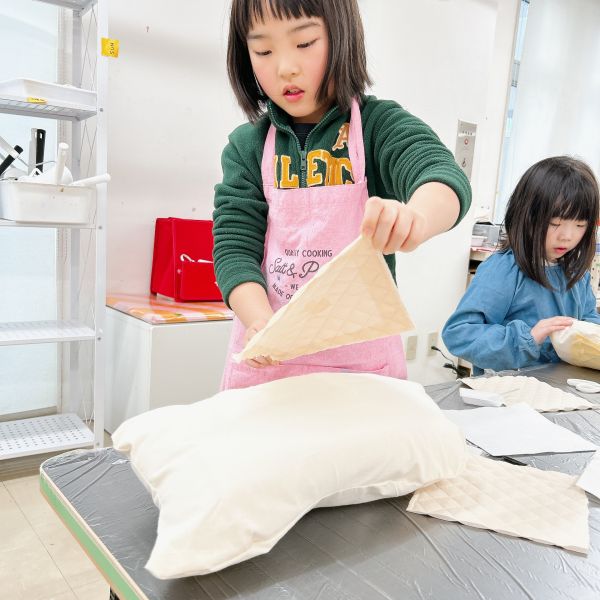 口も閉じられて、しっかりと形ができました。早くも「よし、今日はこの相棒と寝よう!」という声もありましたが…もう少し仕上げの制作をしていきたいところ。きっともっと愛着が増しますよ。持ち帰りは来週になることを伝えると「もう〜!待ちきれないよ!」というほど楽しみな様子です。