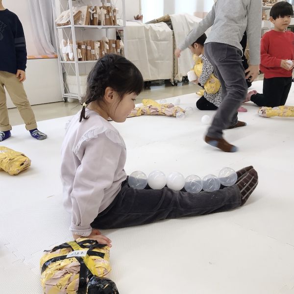 ちょっと複雑な角度調整や力加減が必要なので、ここは何度も挑戦しながら、だんだん感覚を掴んでいきました。特に少し体が大きな小学生たちはコツを掴むのも早い様子で、「見て!けっこう固くなったよ!」とギュッと締まったボールができてきました。