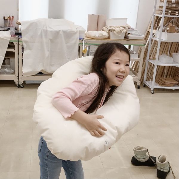 それぞれの体のサイズに合わせて、フィット感を追求した形が生まれてきました。全身で抱きしめる、頭の下に置く、お腹に巻きつける…見事にバラバラでおもしろい!自分のクセや好みも反映されているようで、早くも「相棒」のような愛着が。