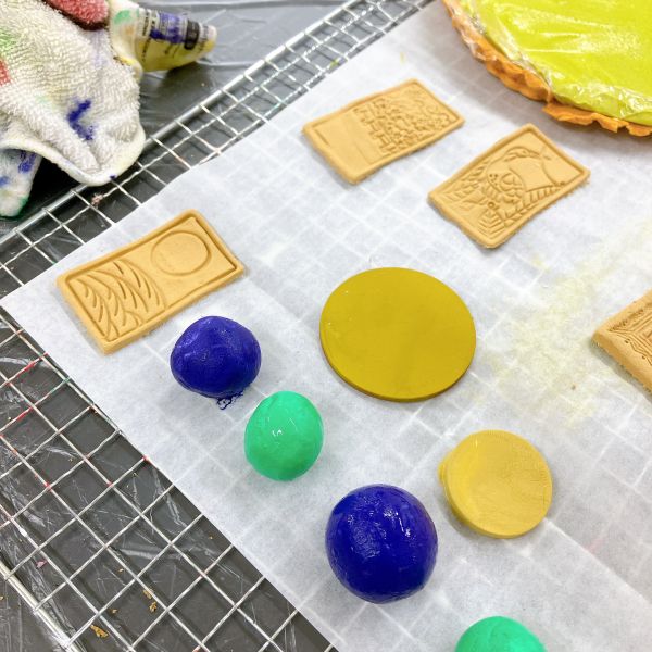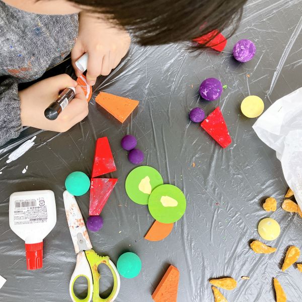 「シャインマスカットをたくさん作りたい!」と粘土を丸めていたこちらの子は、緑を塗っているうちに「ヨッシーの卵」風なものが誕生。「実際食べてみたい!」とワクワクしていました。