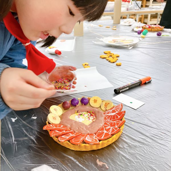作りたいものをとことん作り、「来週はトッピングできるんだ」とニコニコで帰っていったこどもたち。理想のタルトができるといいですね!