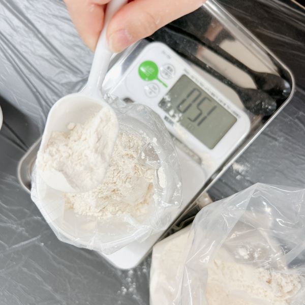 お菓子作りは、正確に材料を計ることがとても大事です。小麦粉や塩のグラム数を確認しながら、ぴったりに計ると「気持ちいい!」。お料理に慣れている子は、小麦粉をこぼさないために「こうするといいんだよ!」と"すりきり"を教えてくれる子も。「OK、できたよ!」次々に進みます。