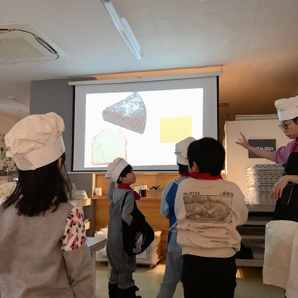 トルネードの教室に、小さなコック帽やスカーフがたくさん。「パンをつくるの?」「コックさん?」「お菓子を作るんだ!」あれこれ想像が膨らんで、さっそくワクワク、そわそわするこどもたち。キッズコースは、おしごと好きな子が多いです。