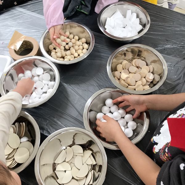 「リアルにしたいから、裏までちゃんと塗る」という子もいれば、「たくさん作りたいから、見える面だけ塗っておこう」という子も。完成形をしっかりイメージできている!より本物らしい複雑な色味を自分で工夫して描き足す子も。それぞれのこだわりポイントがあります。