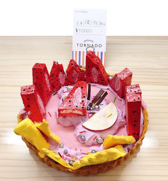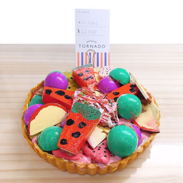 おや、1回目からコッソリ進めていたという、ミニサイズのタルトも並んでいます!トルネードに来てメインの作品を作る傍らで、この3つも毎回地道に作り続けていたそうです。しかもひとつひとつ味がちがうというこだわりよう!どれにしようか迷っちゃう。